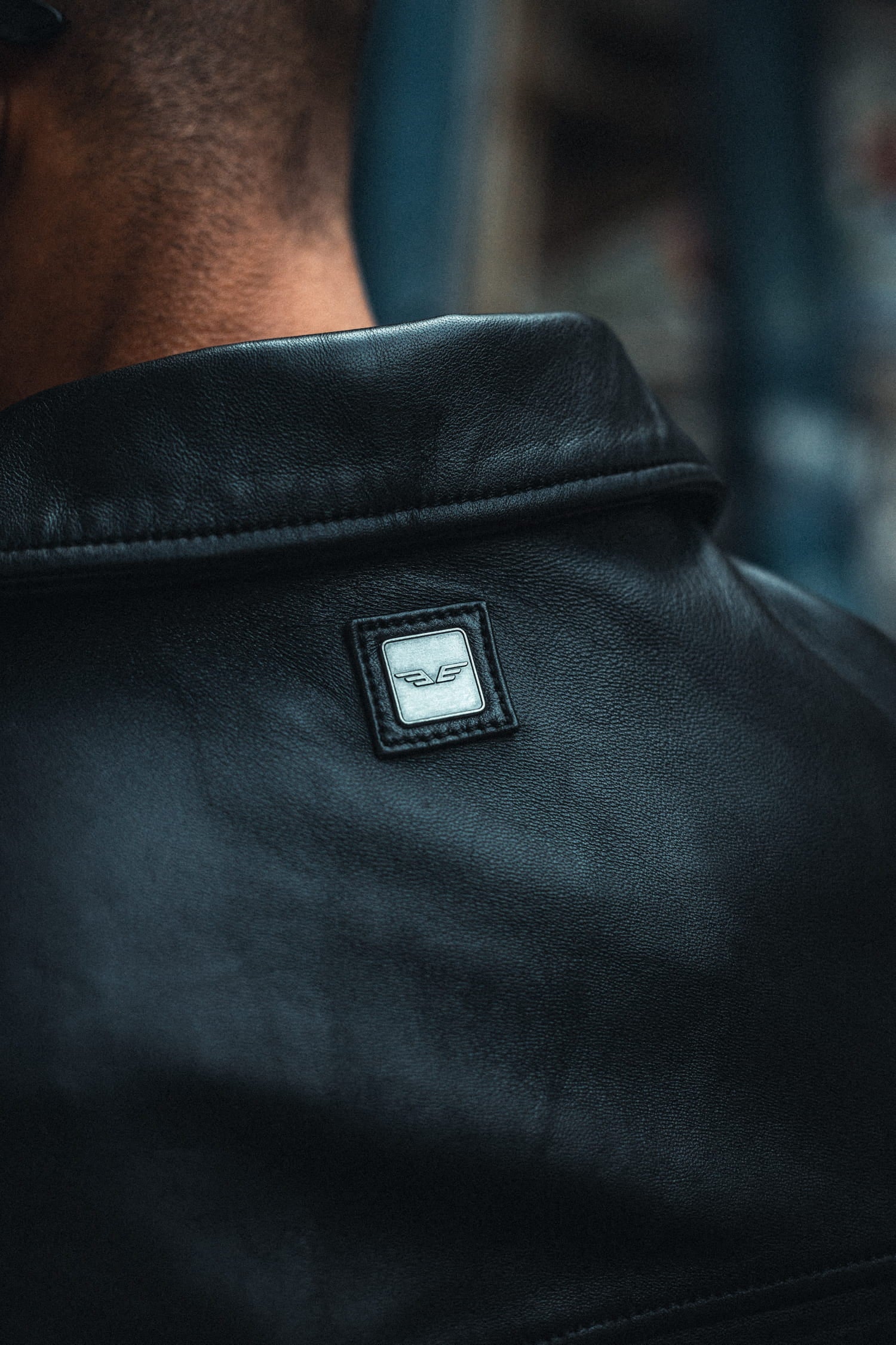 Racila - Women's oversized leather jacket blue/bronze