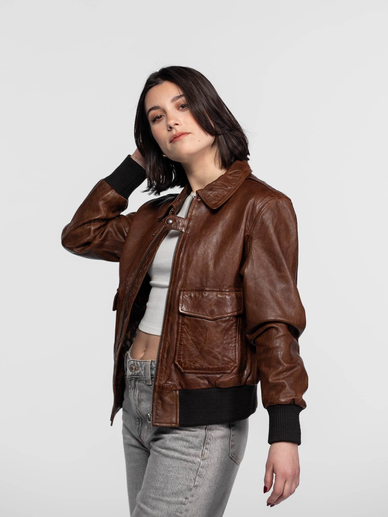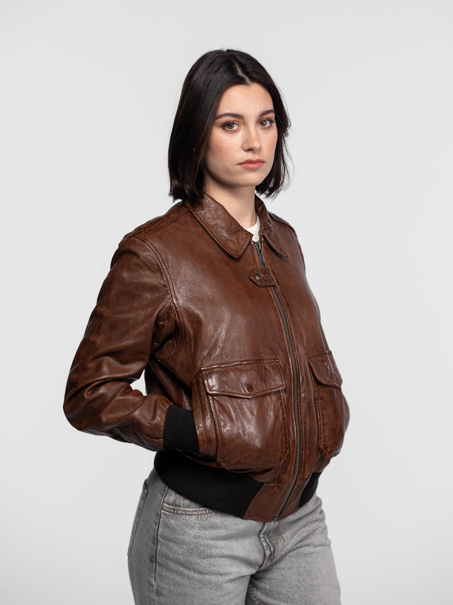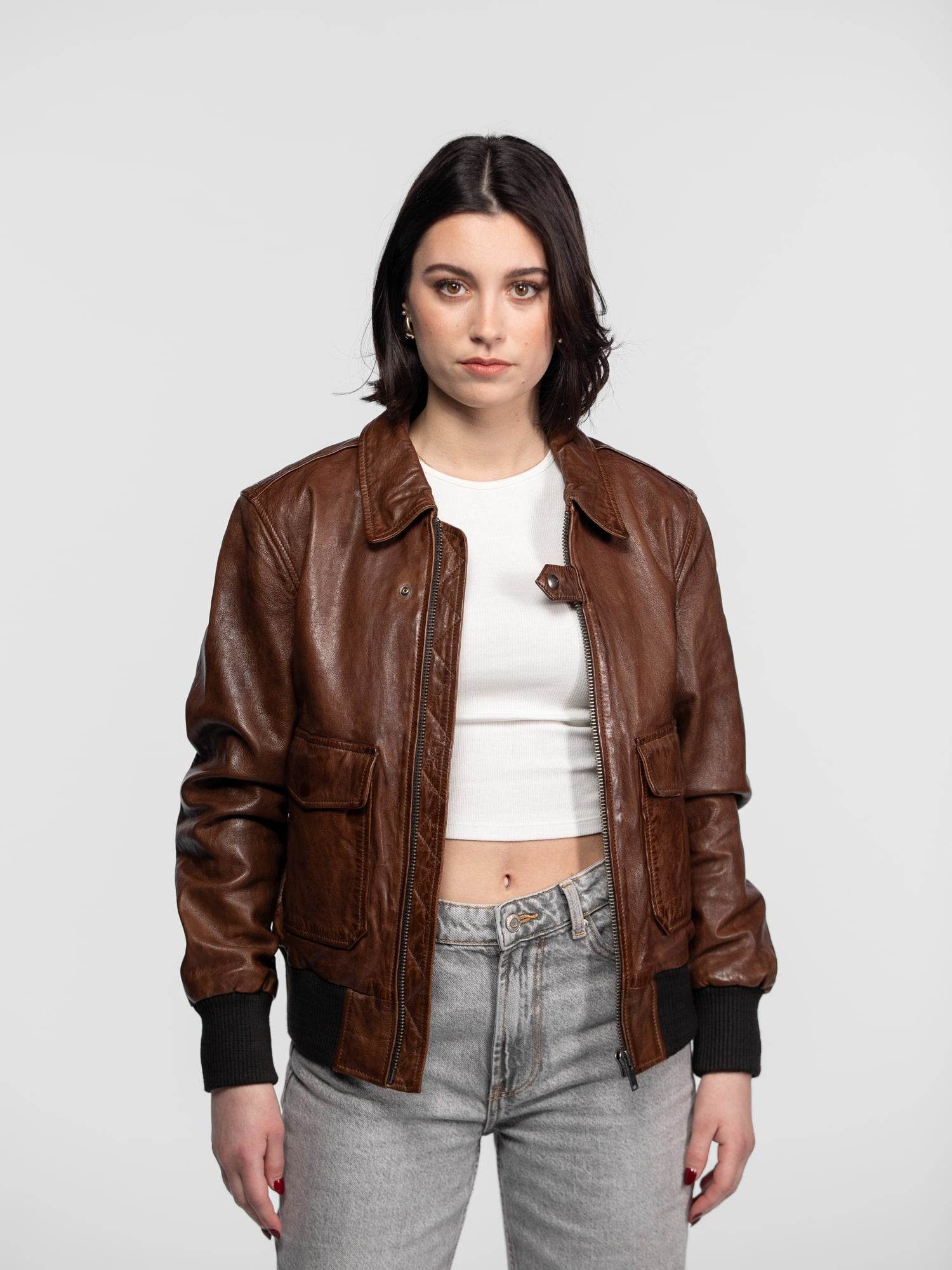 Alicia - Women's leather aviator jacket