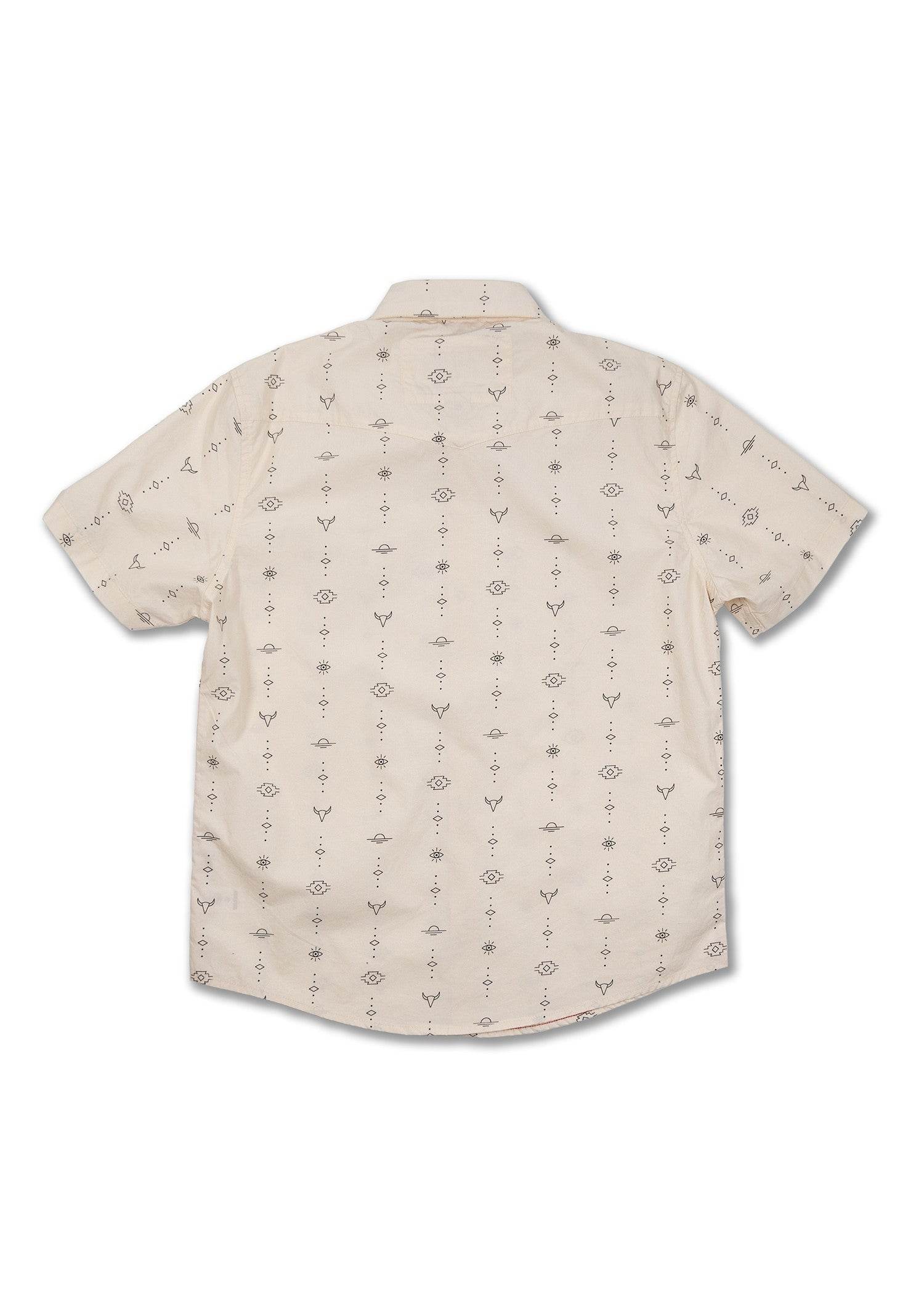 The Bull Shirt is our latest addition this season, and it couldn't be more timely. Crafted with western-inspired panels, a custom illustrated pattern, and pearl snaps, this shirt is a must-have. It's ready to take you from beach to dinner.