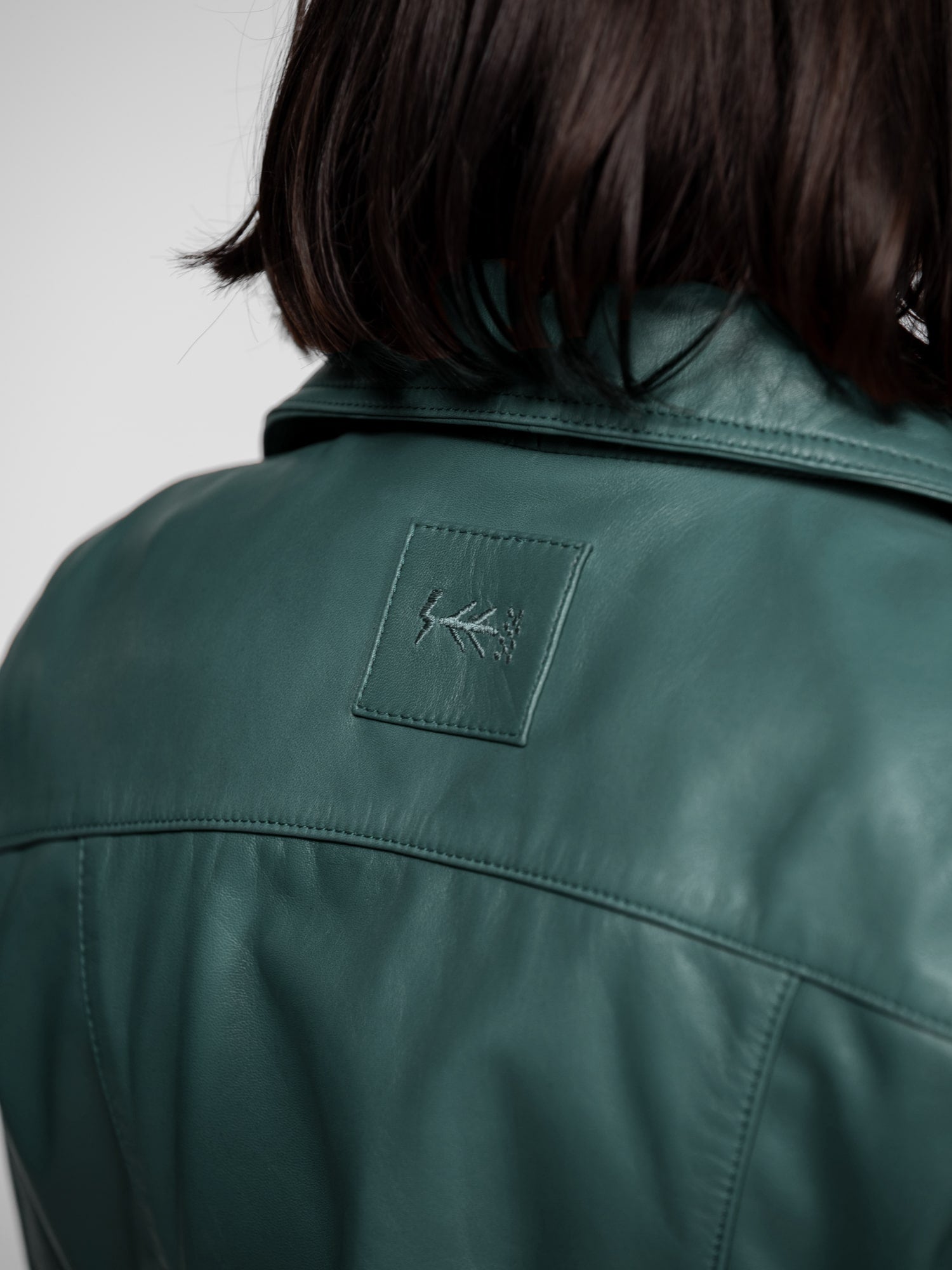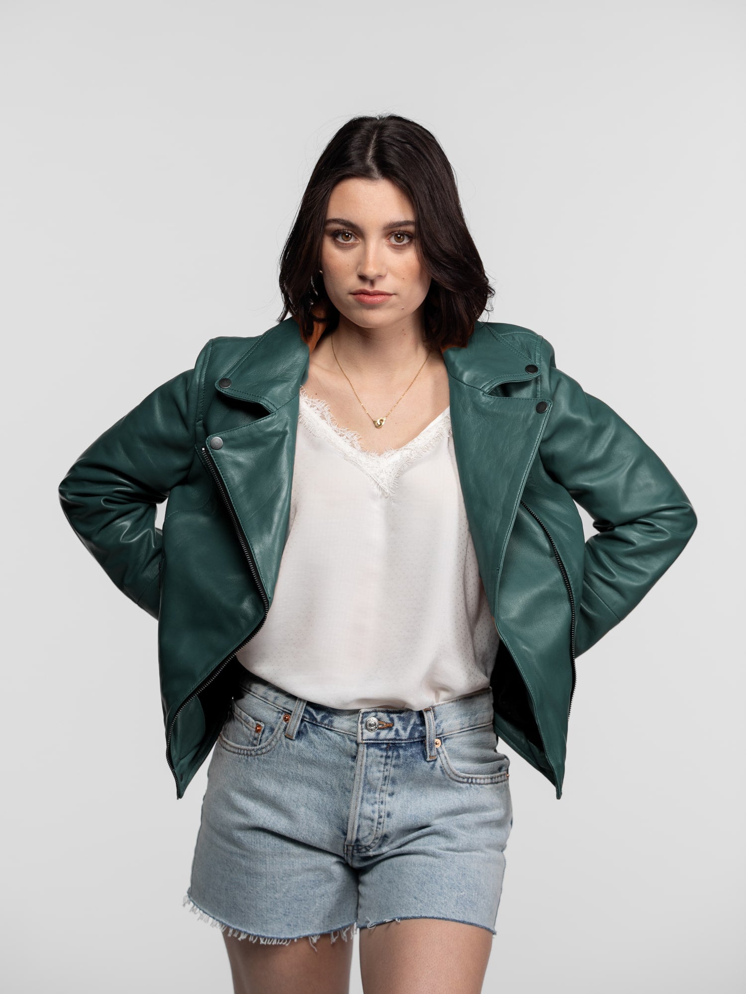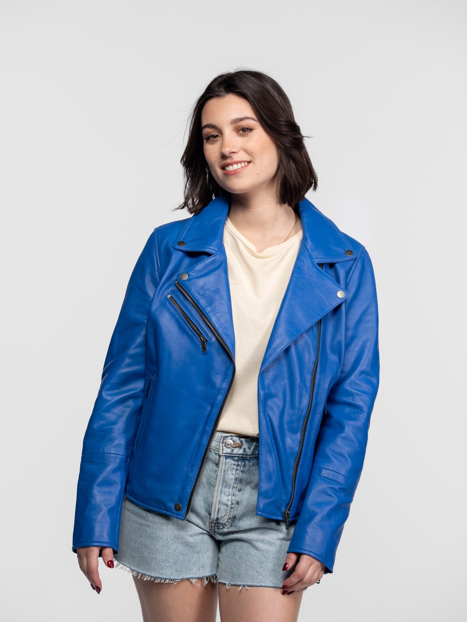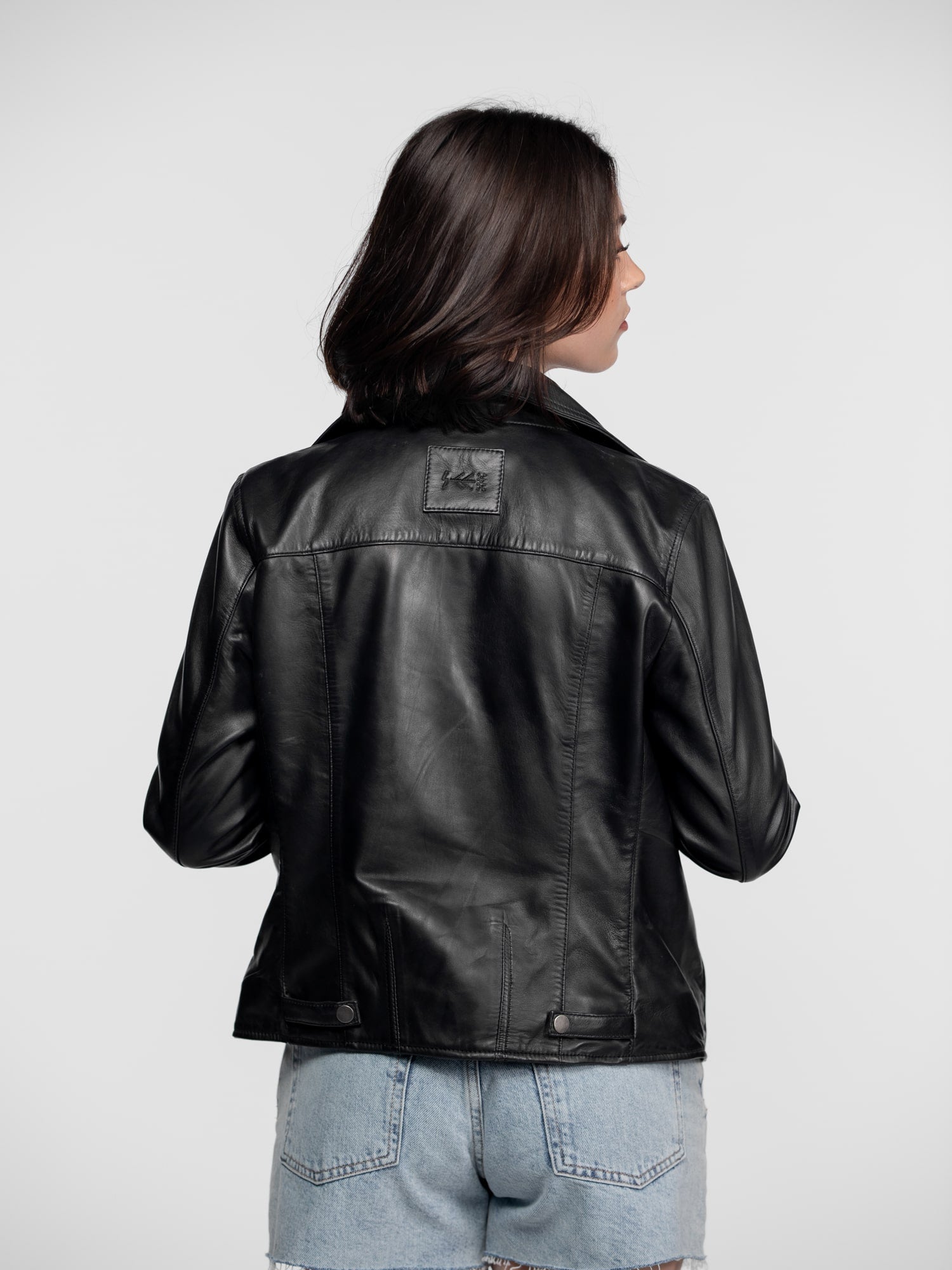 Sa coupe ajustée féminise l’allure rock, tandis que les détails emblématiques affirment une attitude assumée. Une pièce forte, pensée pour traverser les saisons sans jamais se démoder.