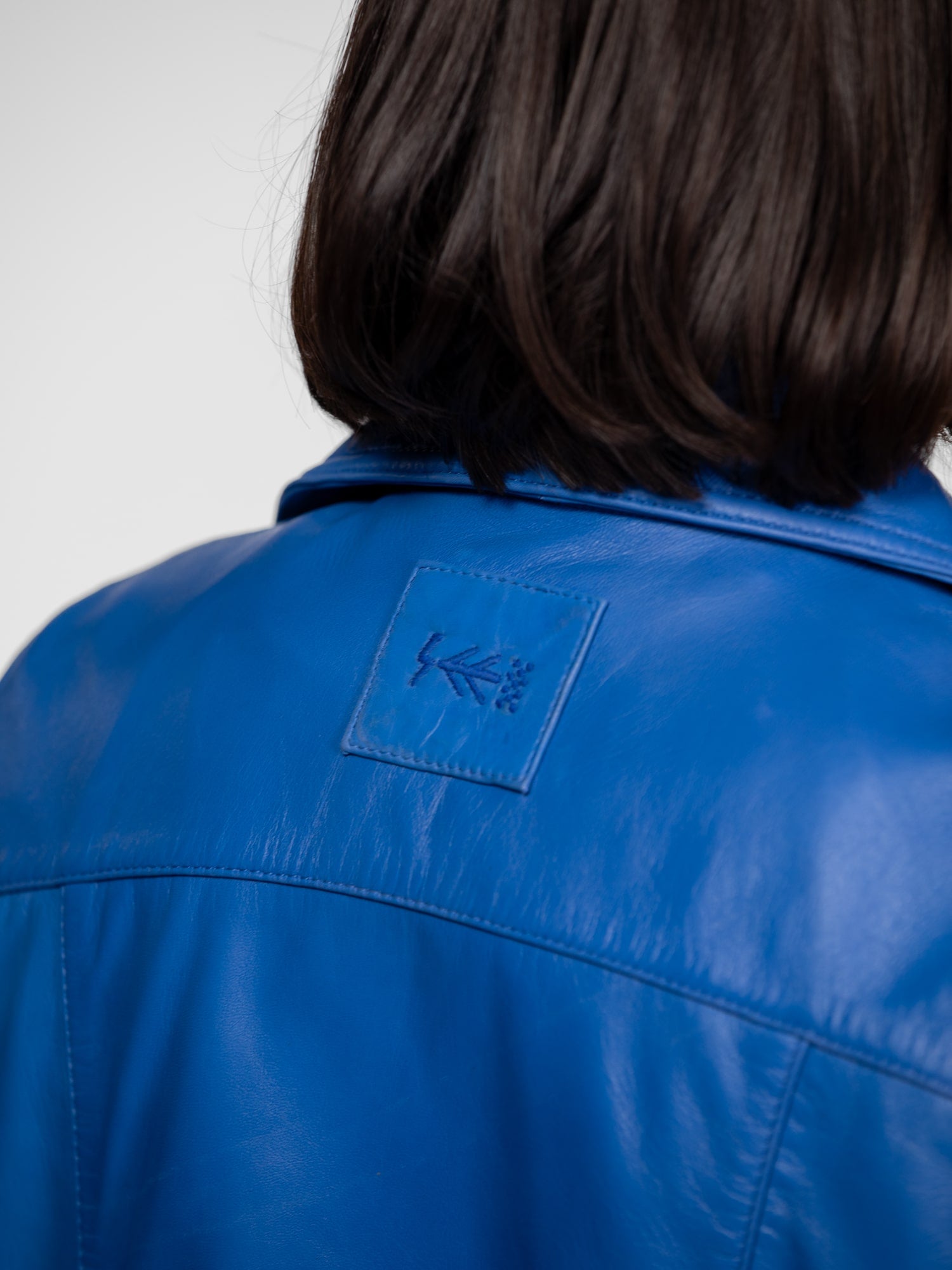 Confectionné en cuir de mouton lisse, ce blouson se distingue par sa finition mate et son tombé souple, qui épouse la silhouette sans la contraindre.