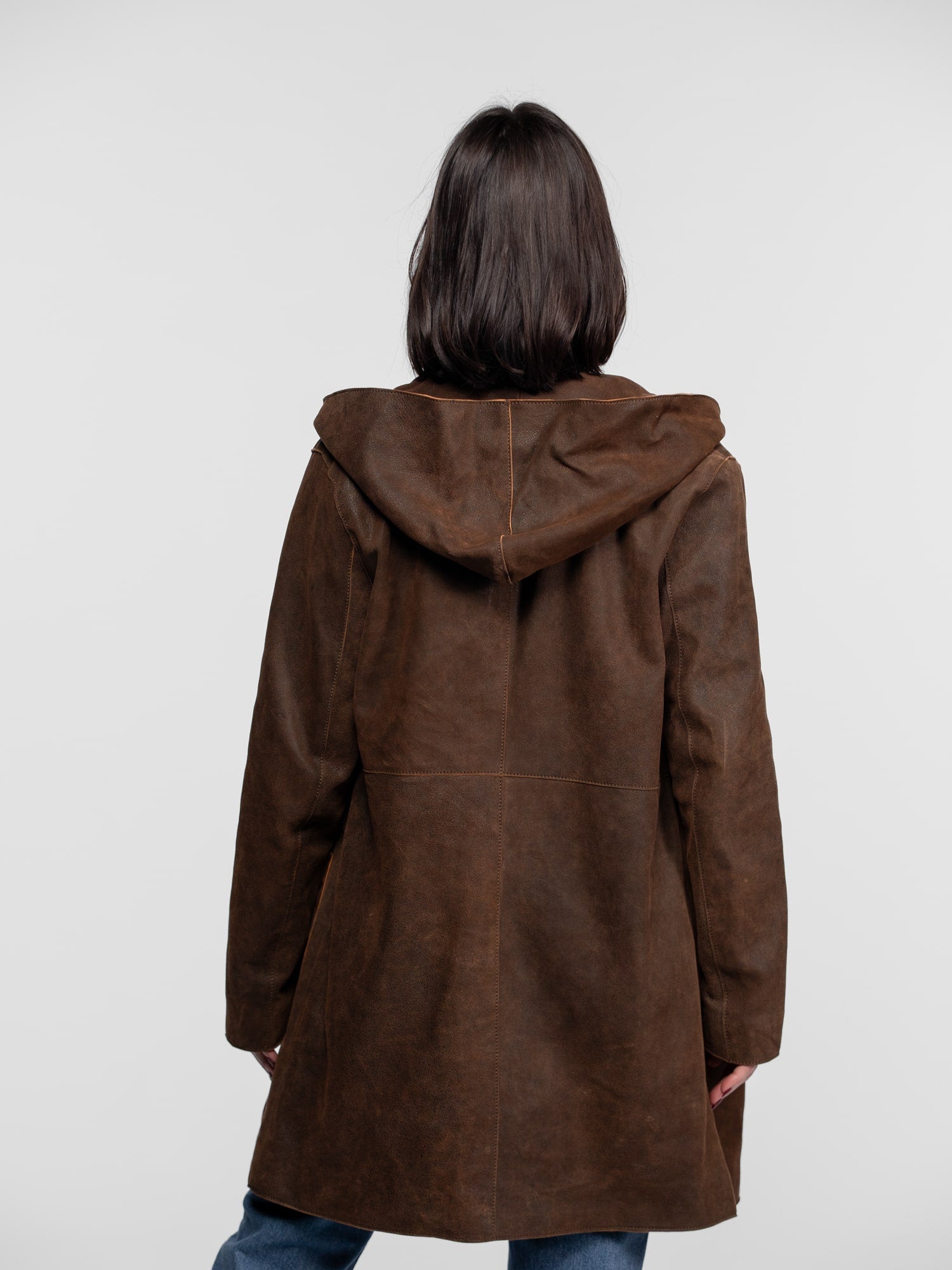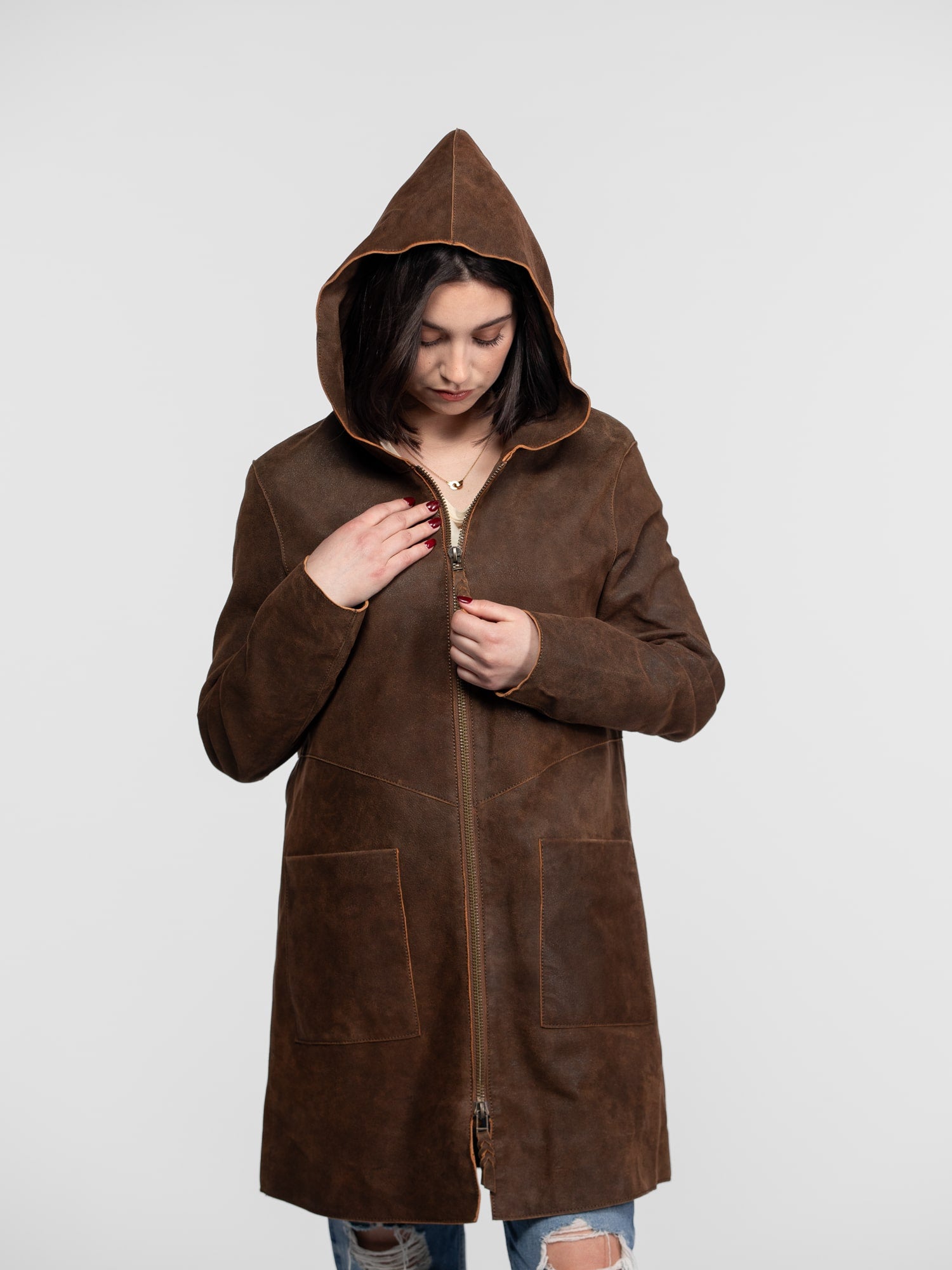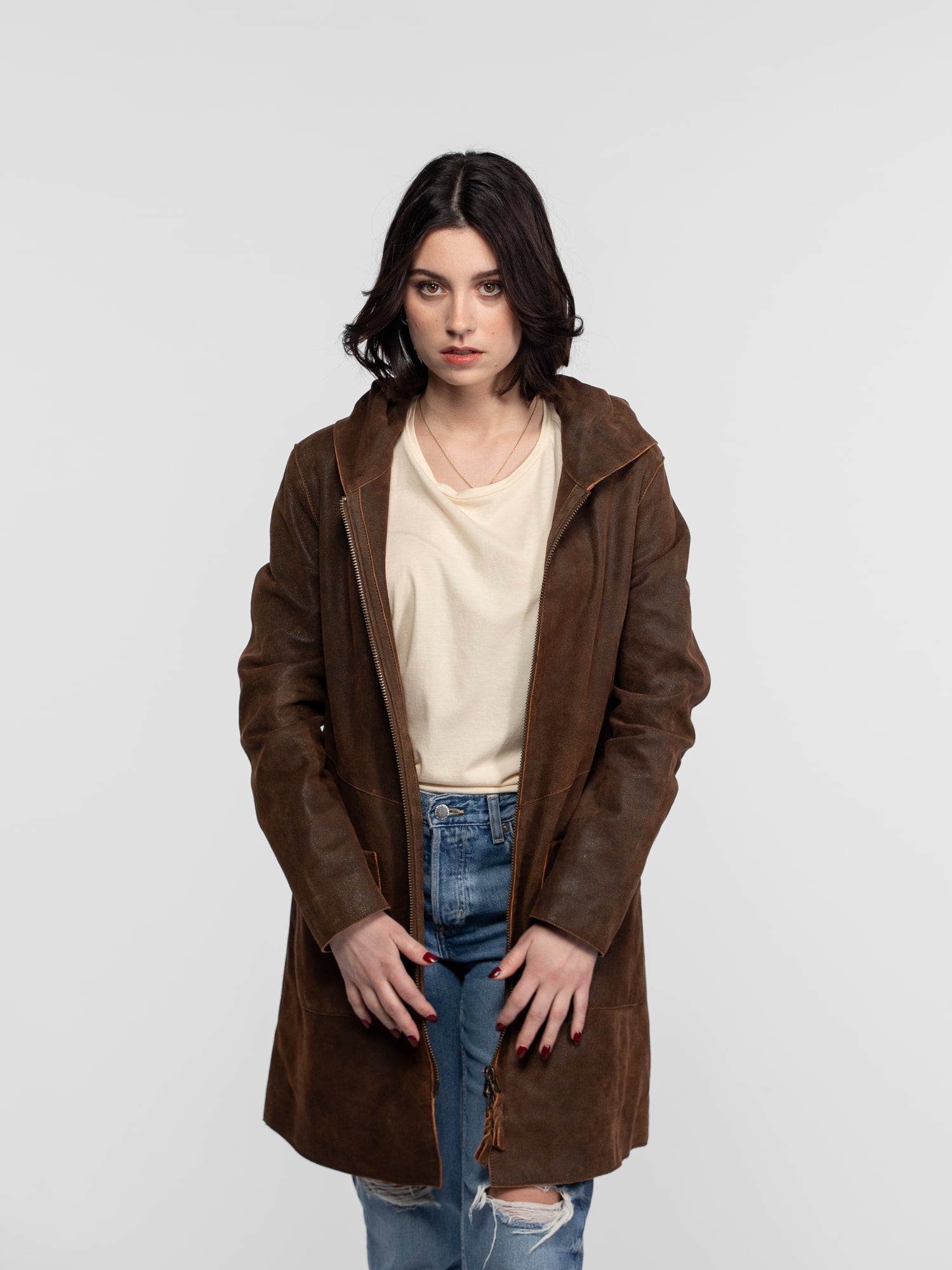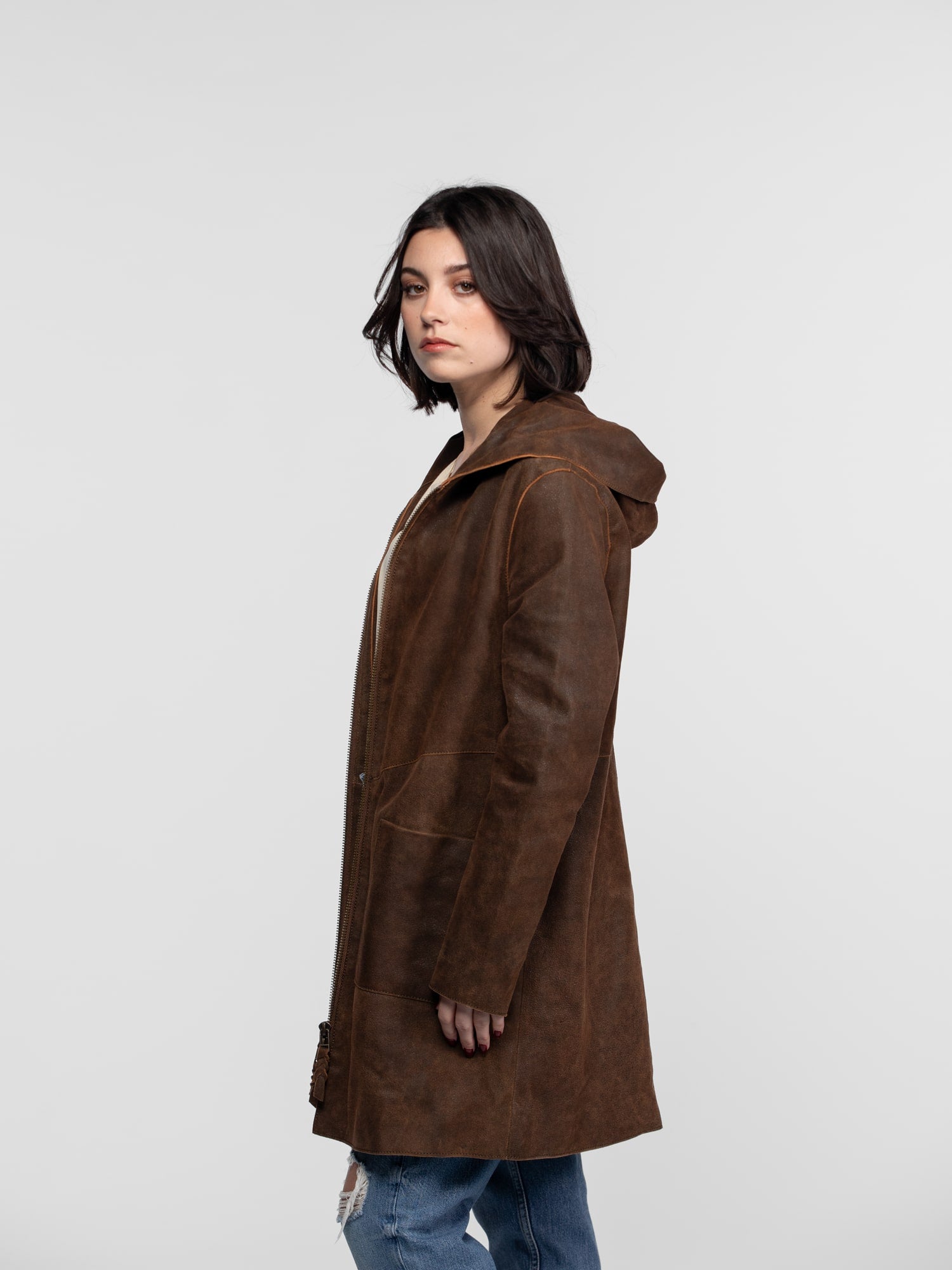 Adopt a bohemian chic look with this lightweight and supple lambskin jacket, perfect for any occasion. Its unique design combines the charm of high-quality lambskin with the softness of a practical hood, while offering a fluid and elegant fit.