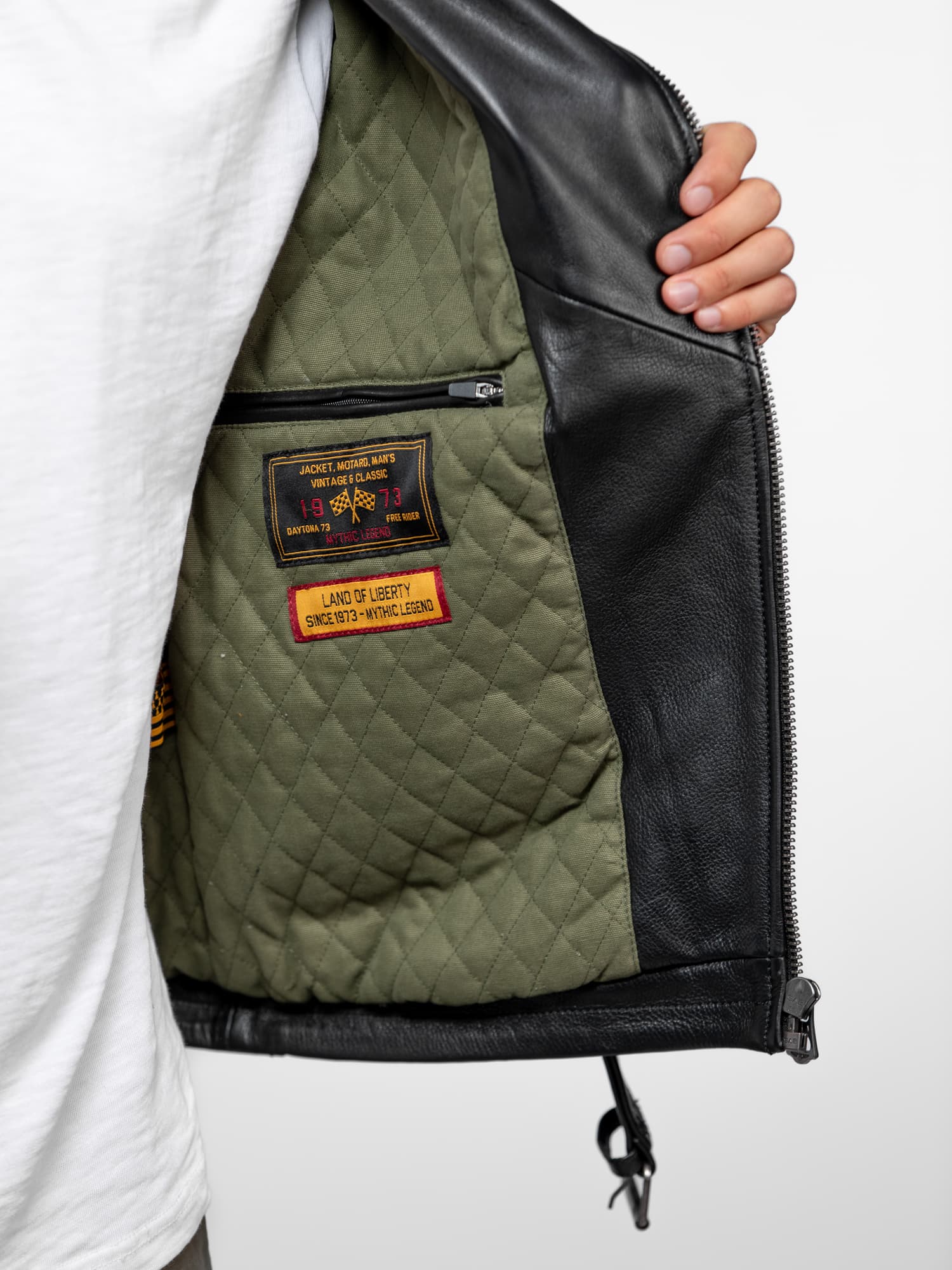 Easily recognizable with its long, asymmetrical V-neck, it is appreciated for its fitted cut and numerous details (studs, buckles, stitching, etc.). Today, it transcends fashions without ever going out of style, finding its place in the wardrobes of rock fans and fashion enthusiasts alike. Put on a biker jacket, and you wear a piece of history, a piece of culture, and a bold statement.