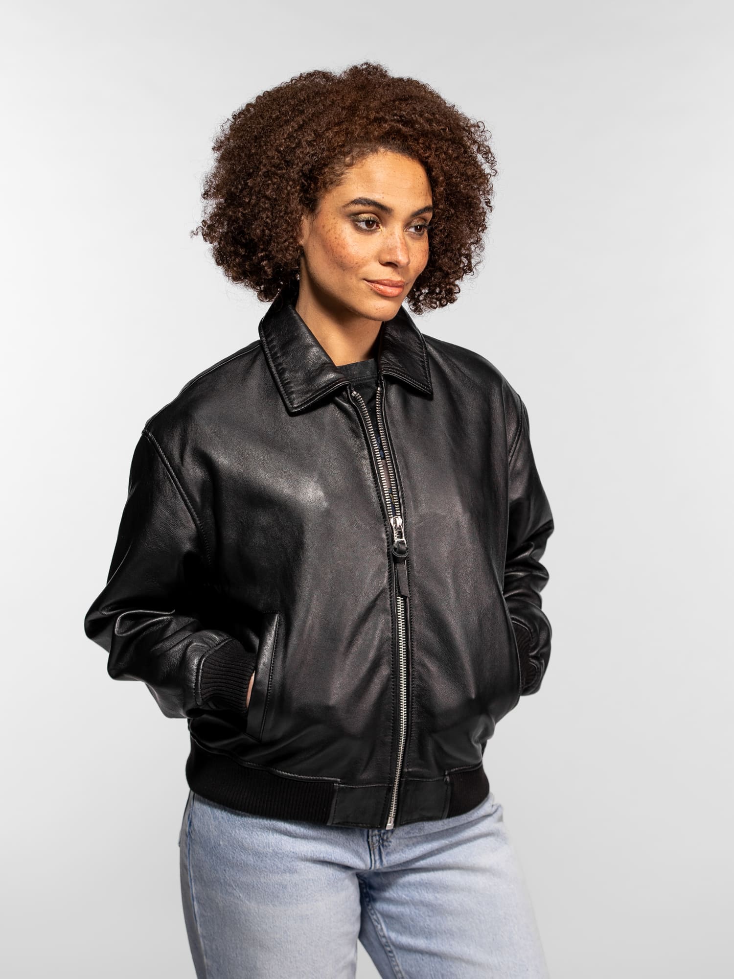 Le blouson femme Tulip en cuir de mouton Salvador allie simplicité et élégance. Son cuir souple, sa coupe légèrement bombers et sa base en bord-côte offrent confort et modernité, pour une pièce facile à porter au quotidien.