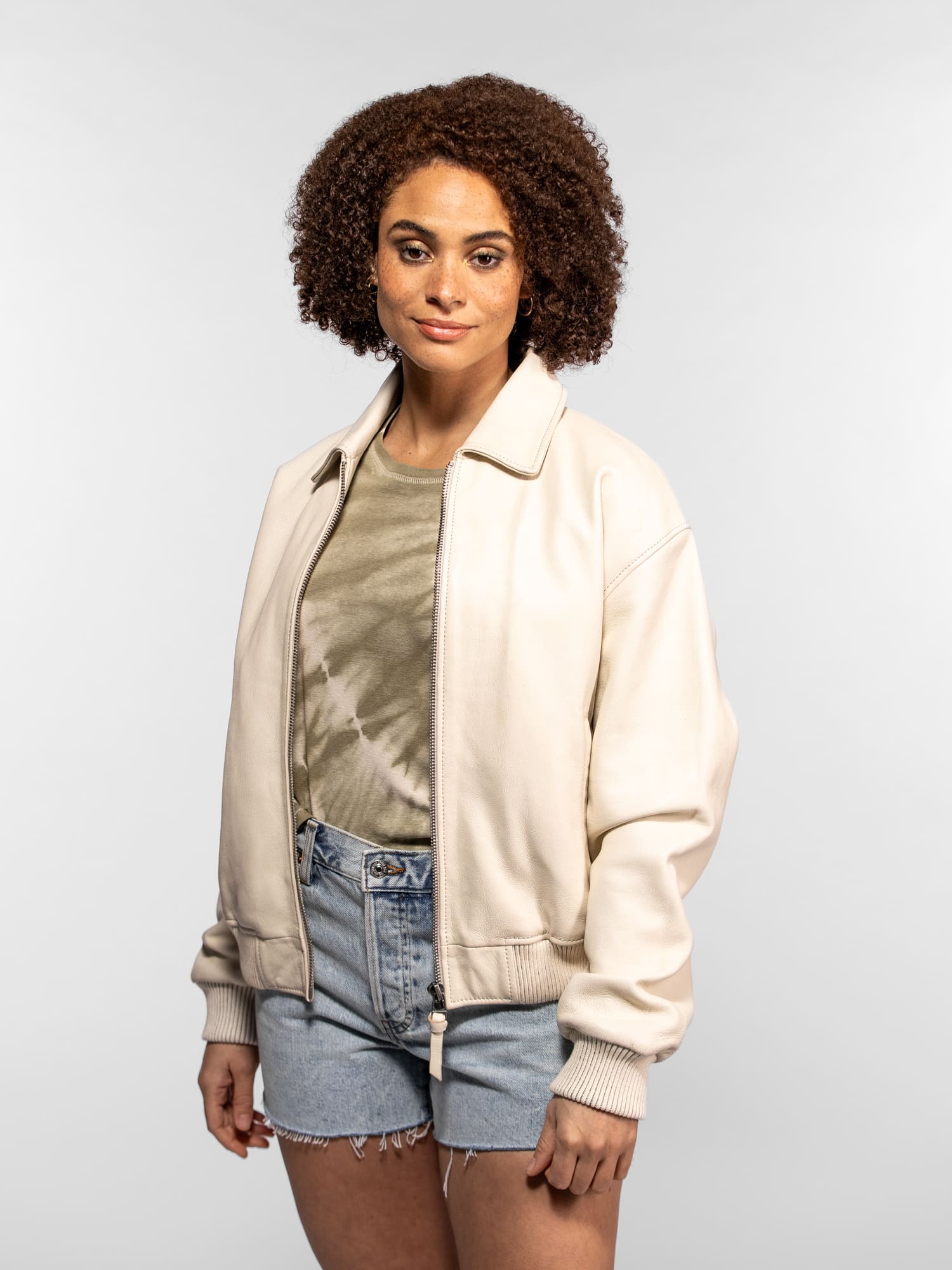 La mannequin mesure 1.68m, elle porte le blouson en taille M.