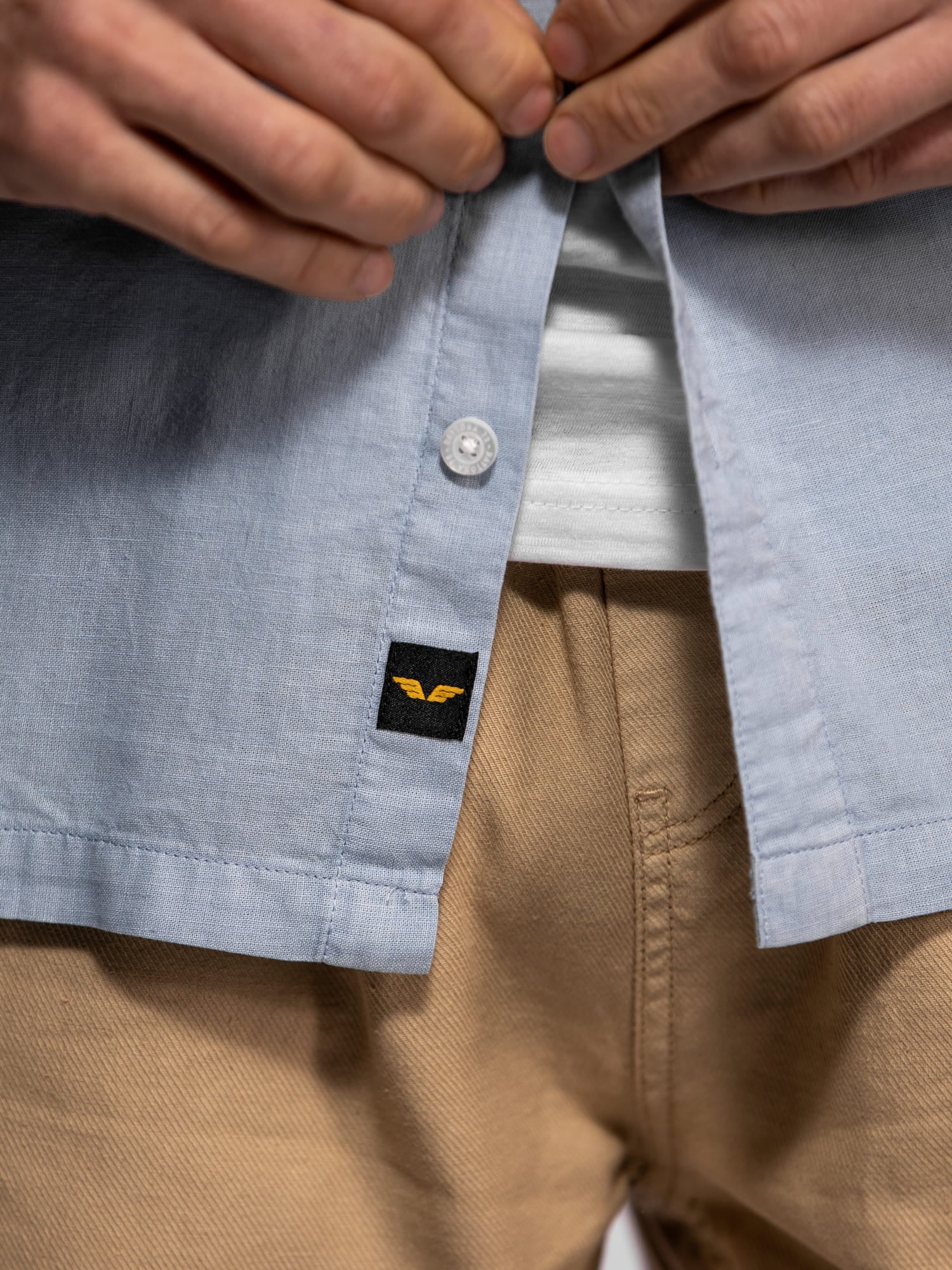 La chemisette Amador allie légèreté et élégance pour la saison estivale. Confectionnée dans un mélange de coton et de lin, elle offre un tombé naturel et un confort optimal, idéal par temps chaud.