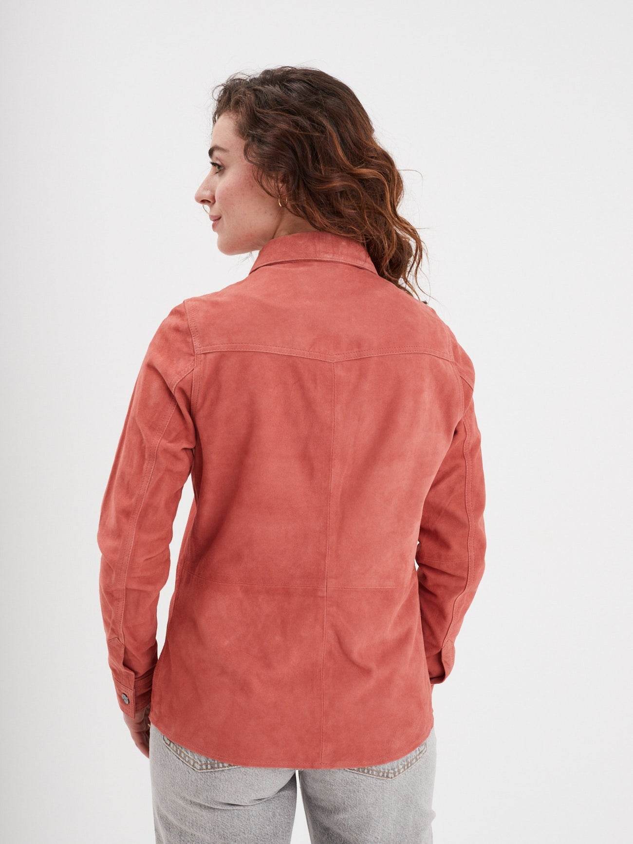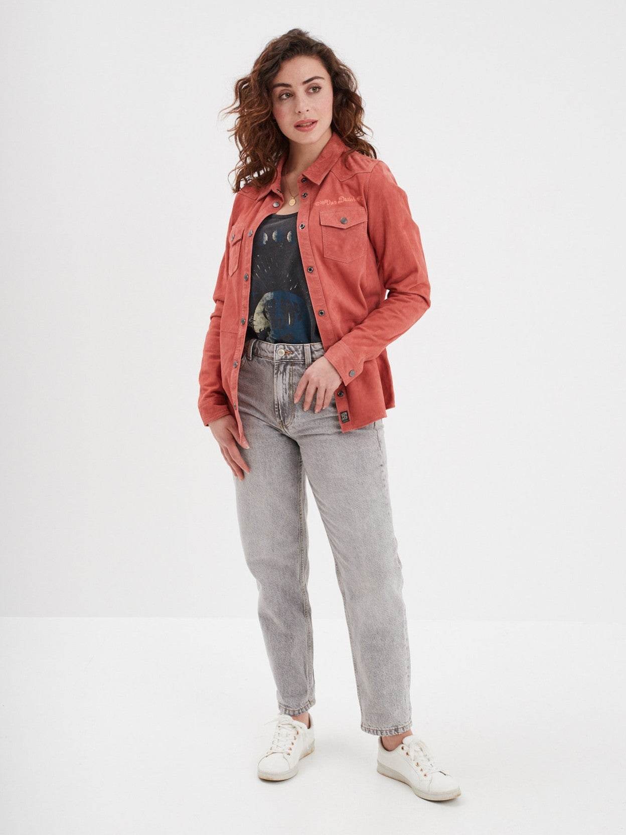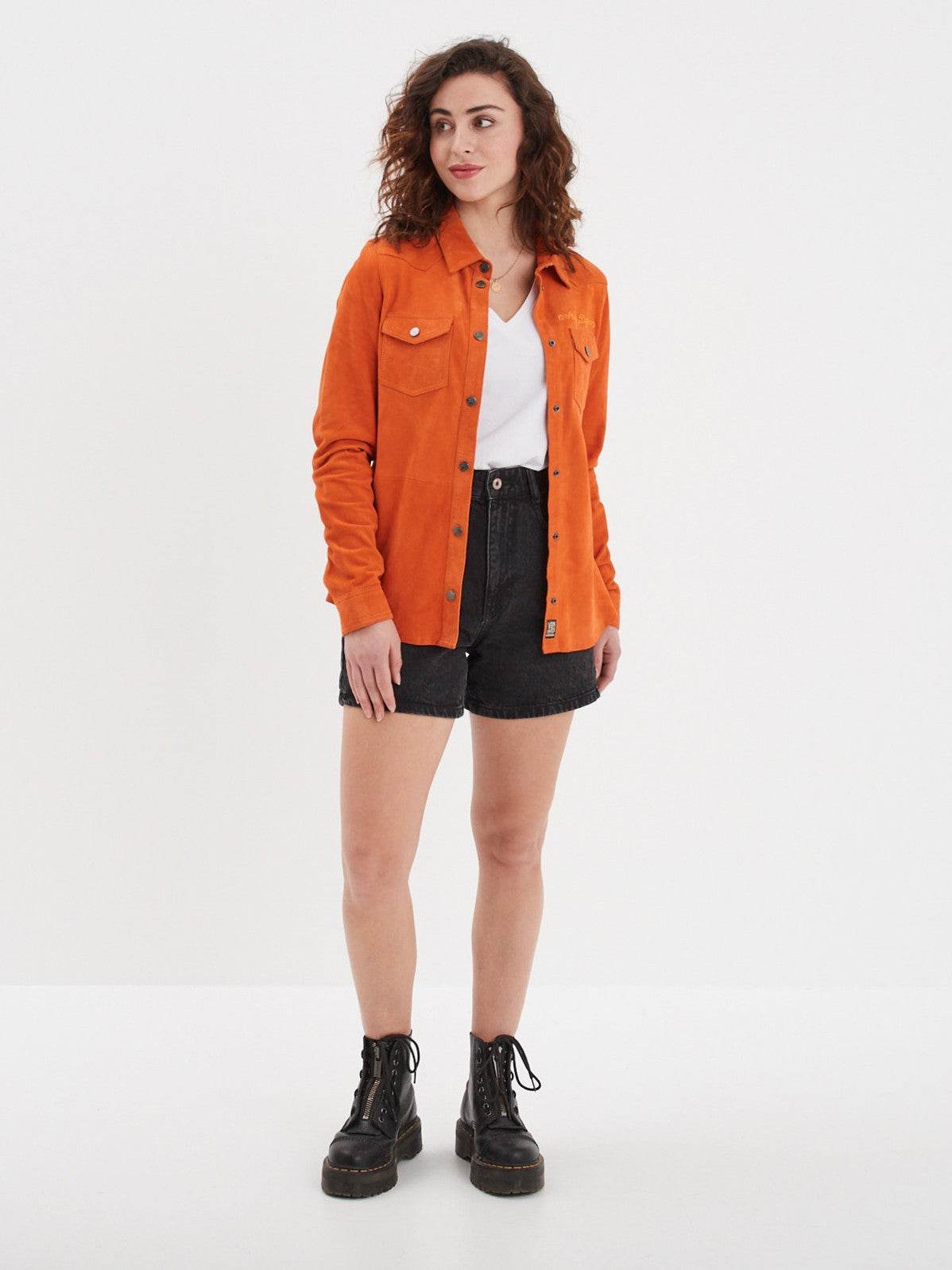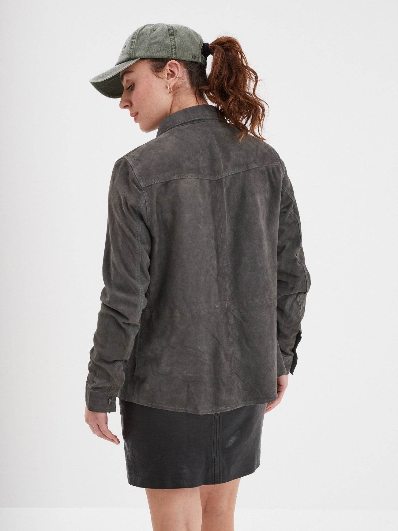 Cette chemises à boutonnière personnalisée est fabriquée dans un cuir de chèvre velours. Ce modèle à la coupe ajustée dispose d'une broderie à la poitrine reprenant le logo "Von Dutch".