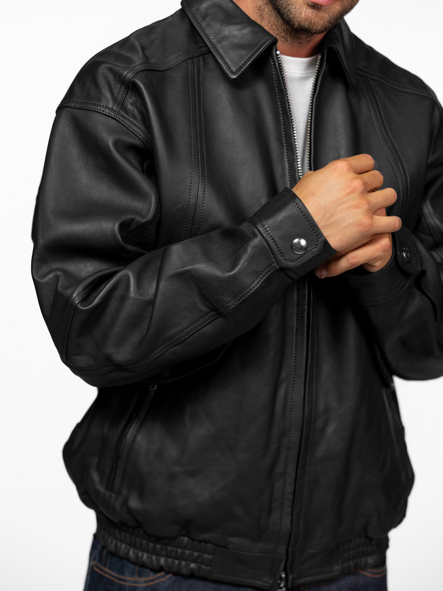 Redéfinissez votre style avec cette veste en cuir de mouton oversize, la pièce incontournable de notre collection. Conçue pour ceux qui aiment jouer avec les codes du streetwear et du luxe, cette veste combine confort et style. Son col chemise classique rencontre une coupe oversize dans la tendance actuelle.