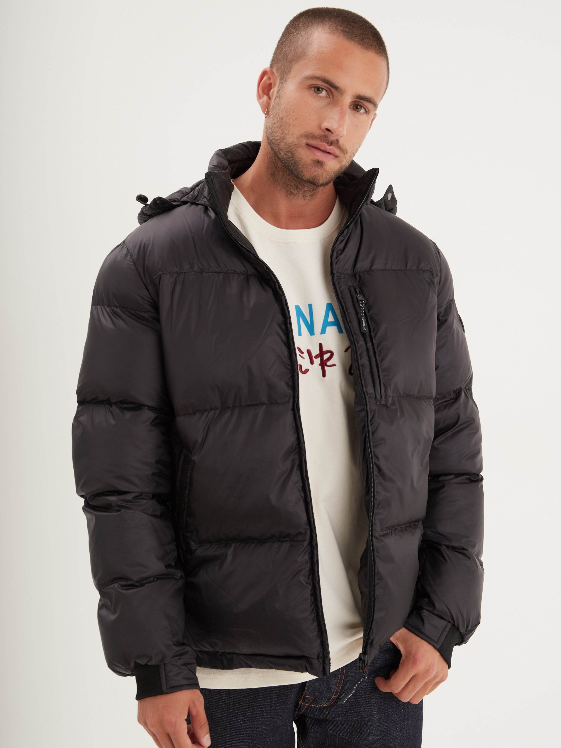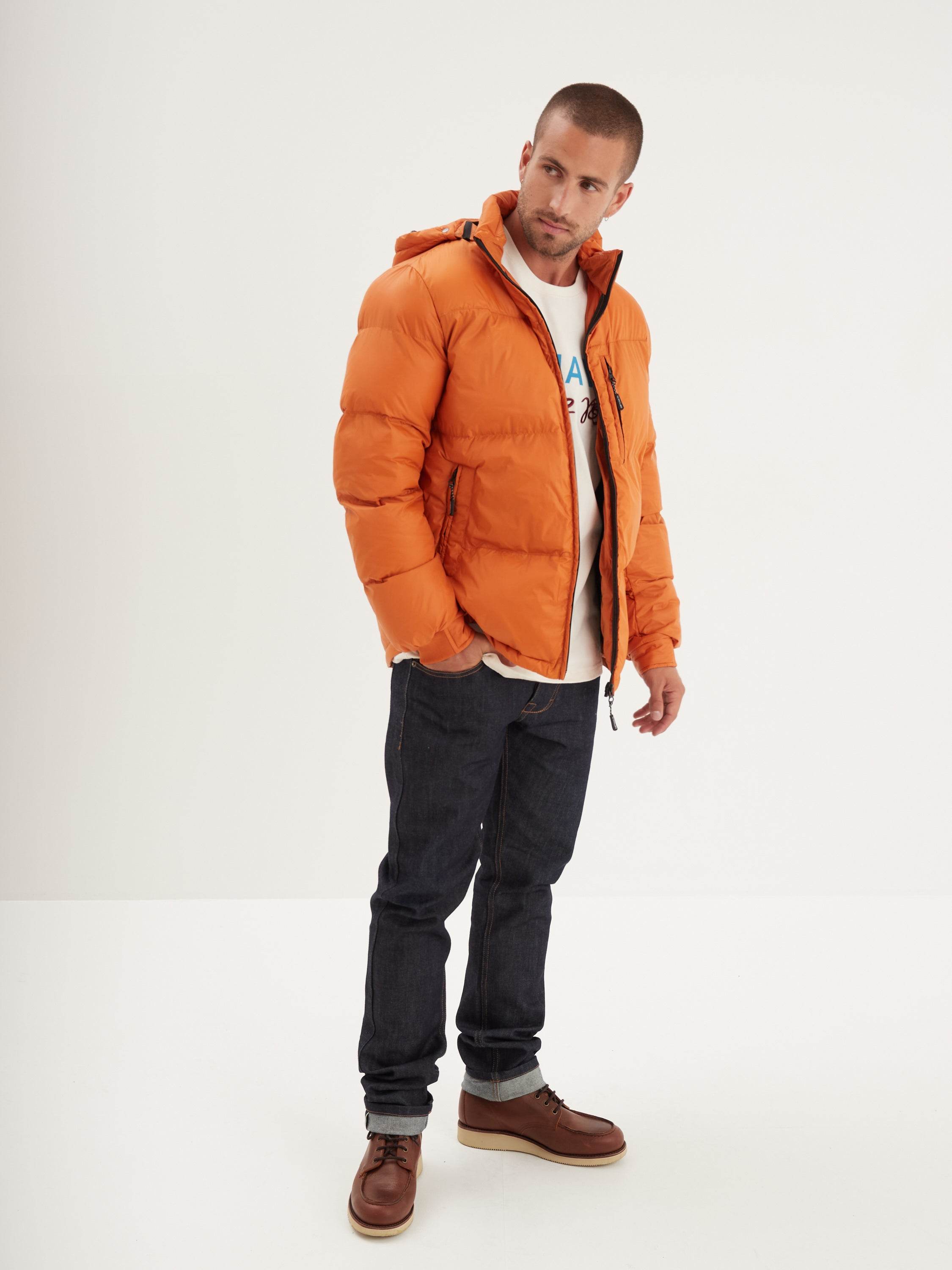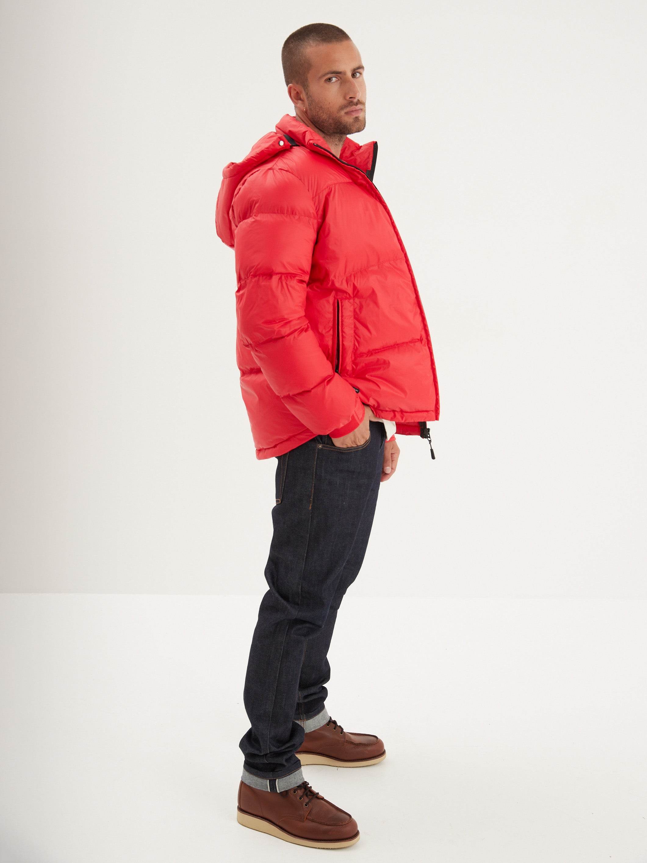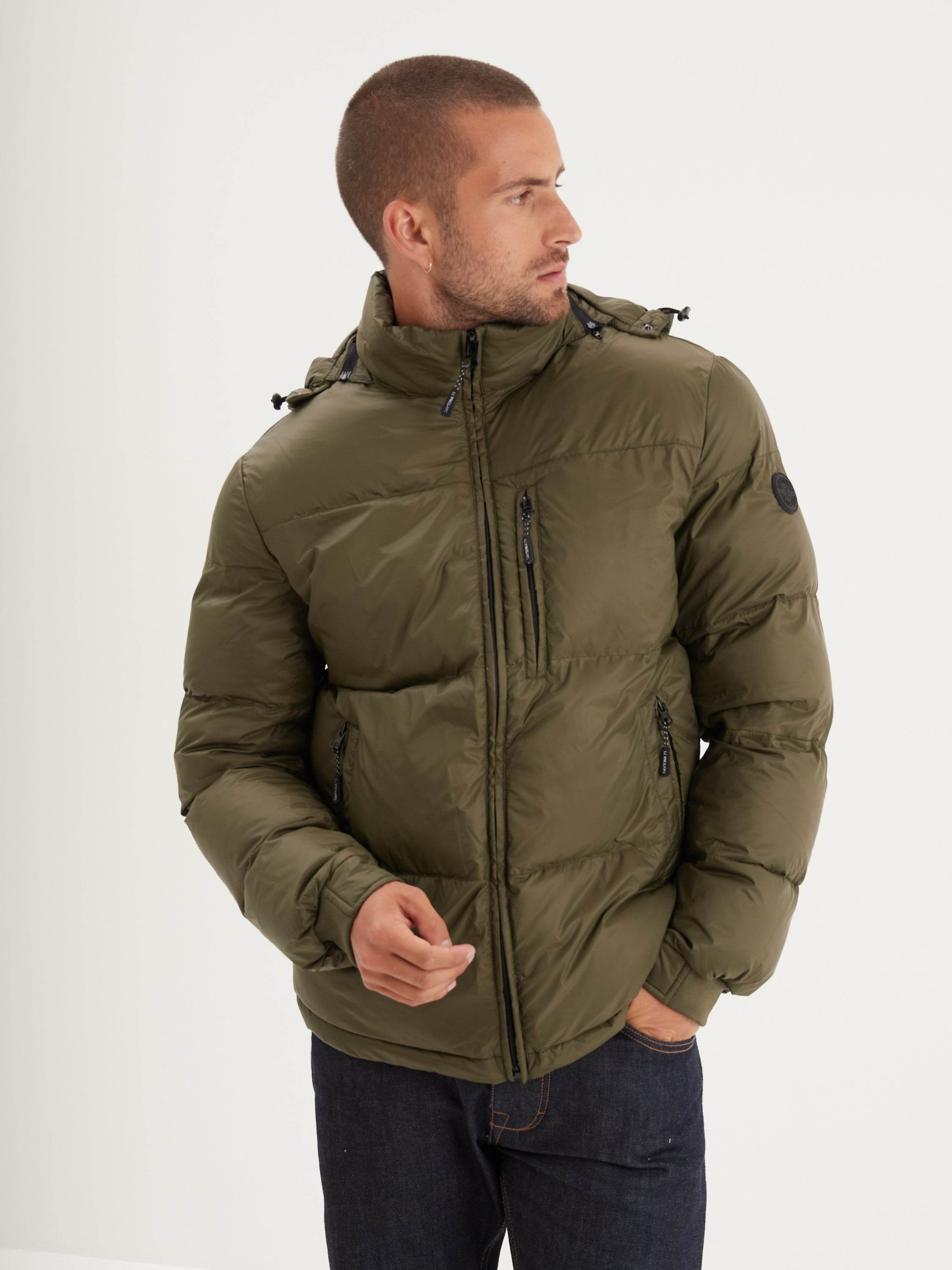 Le mannequin mesure 1.80m, il porte la doudoune en taille M.