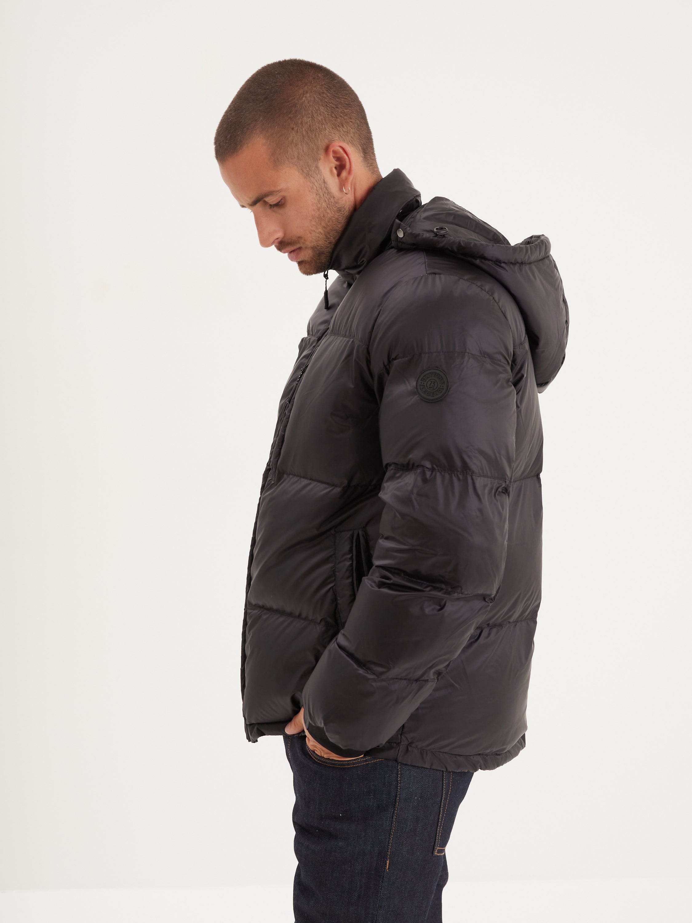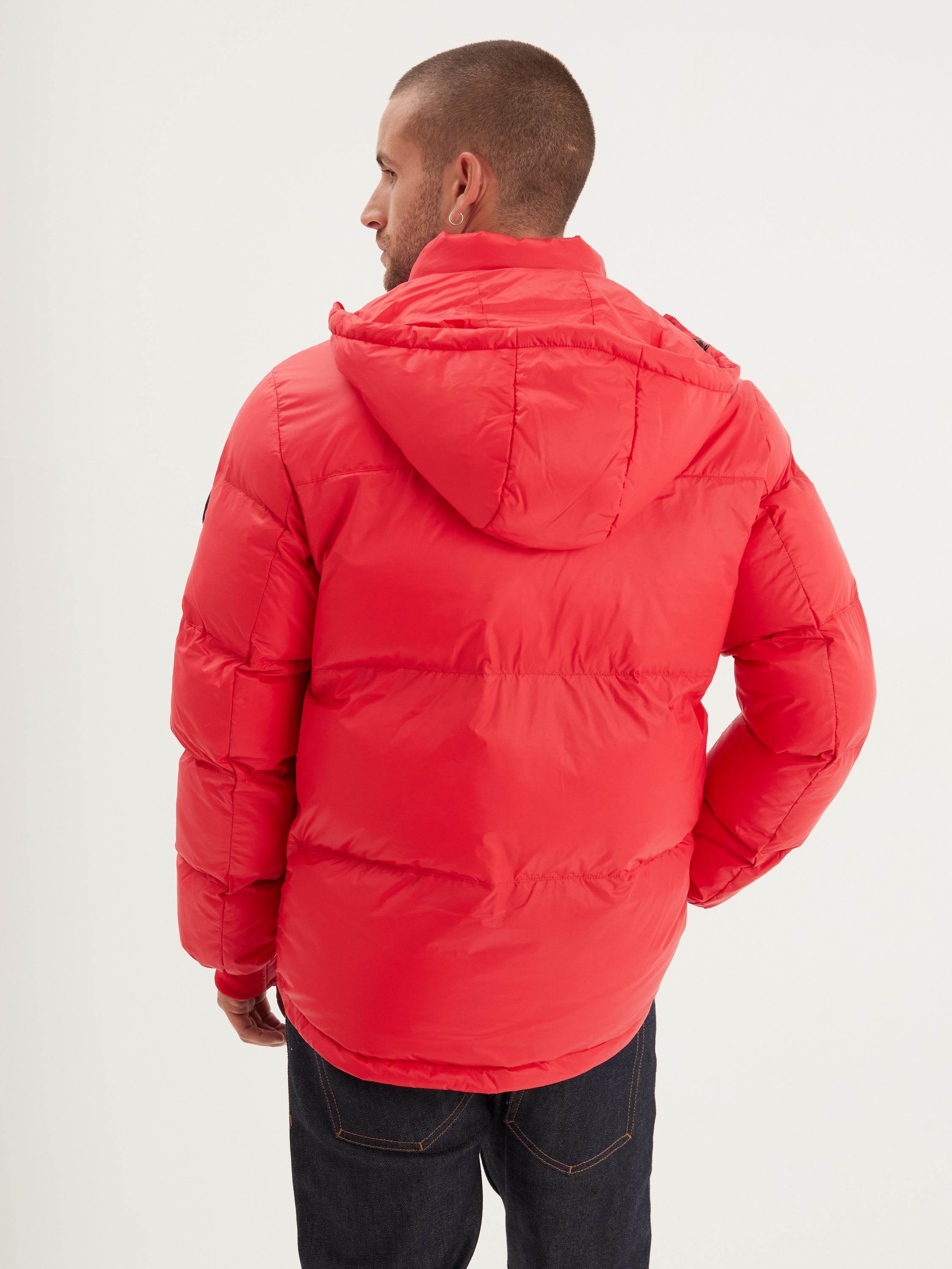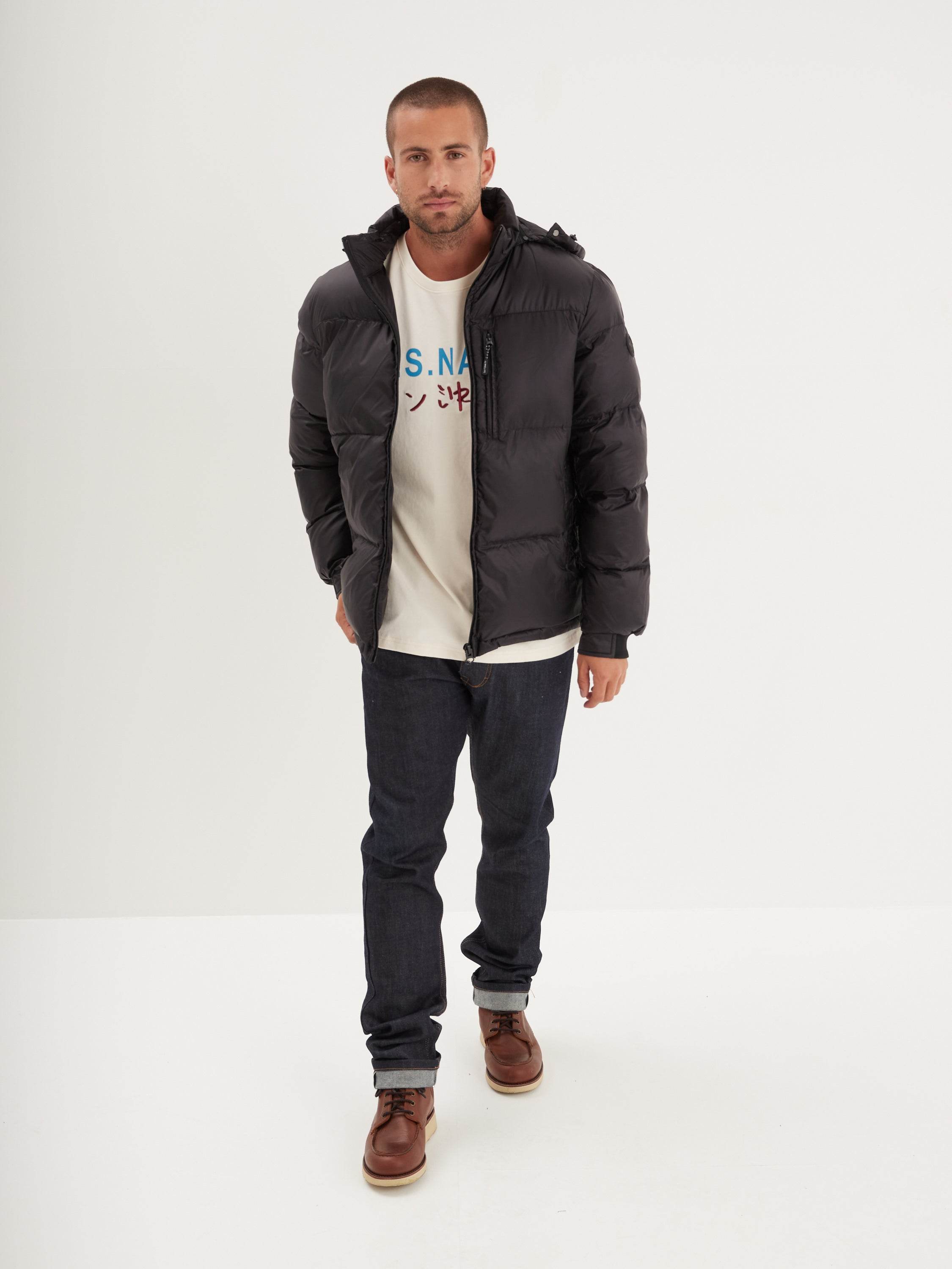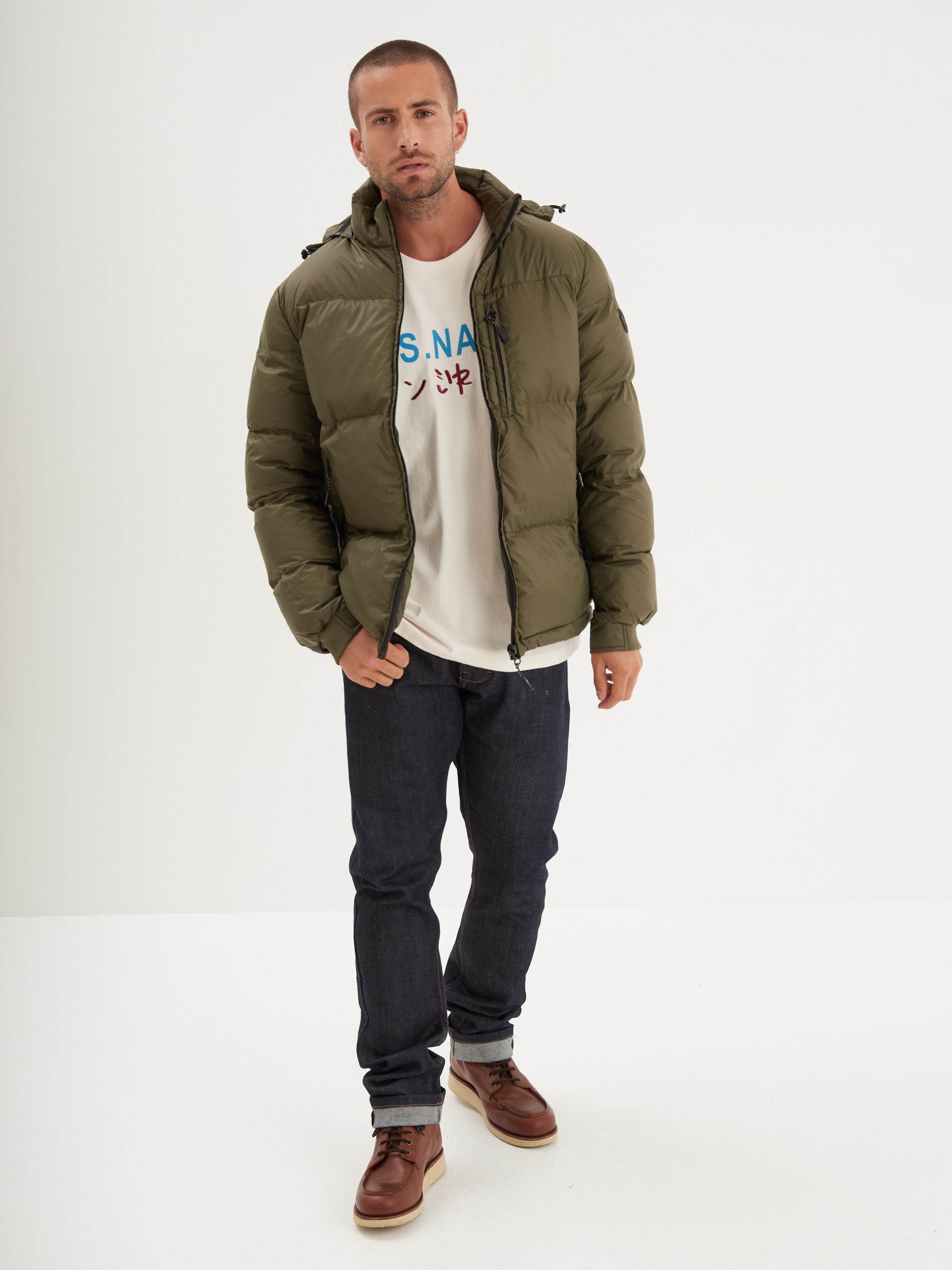 Le mannequin mesure 1.80m, il porte la doudoune en taille M.