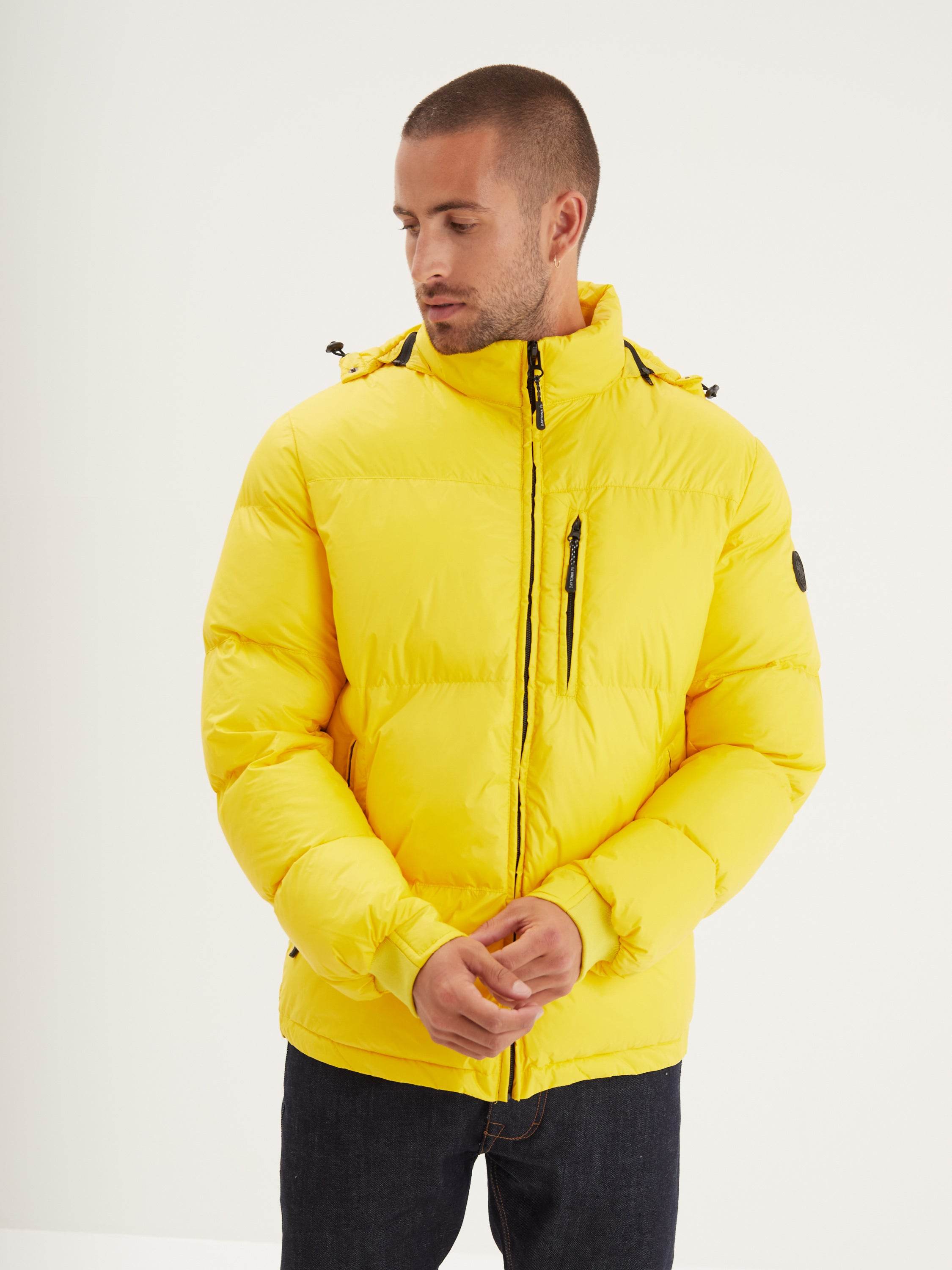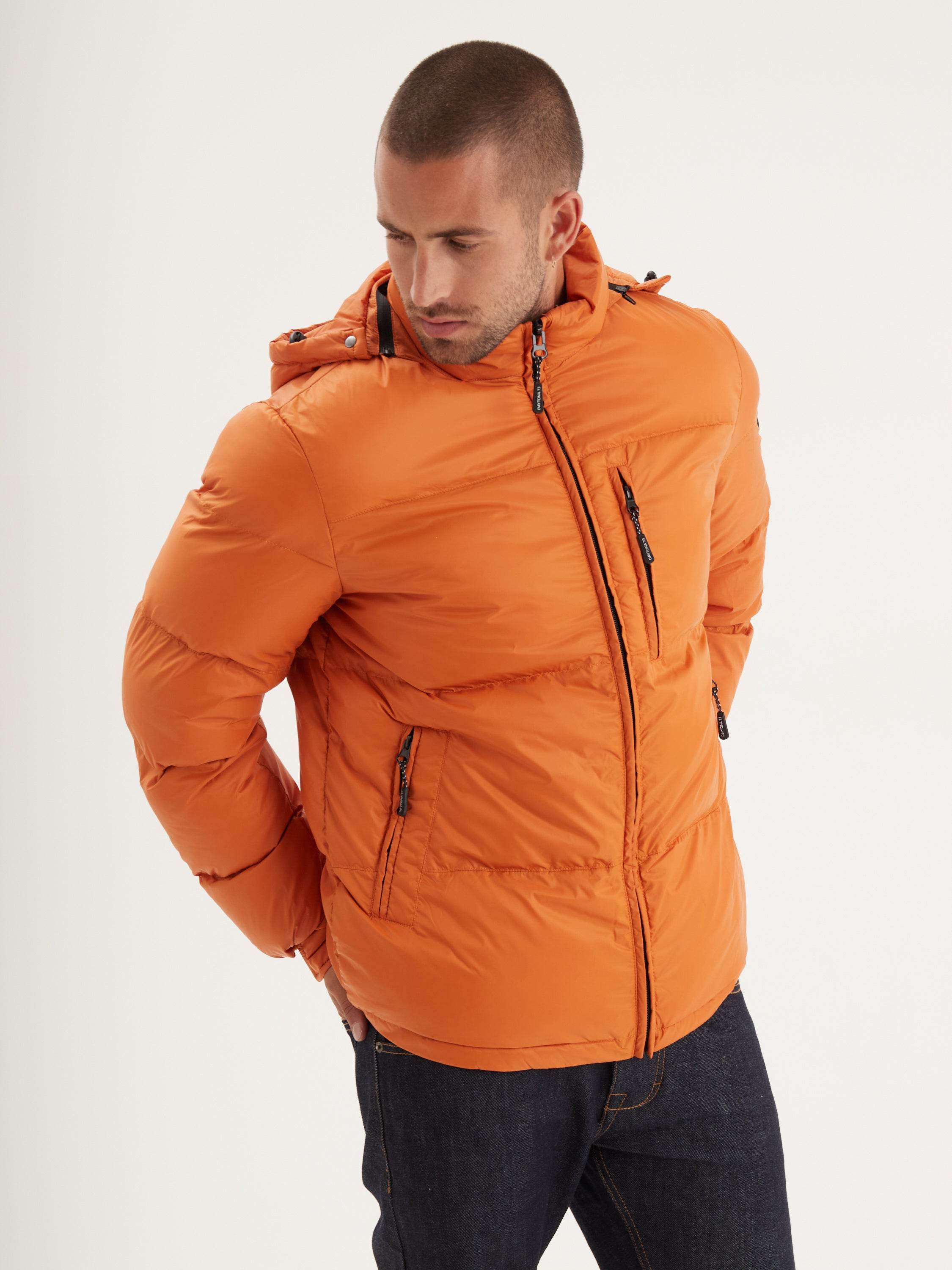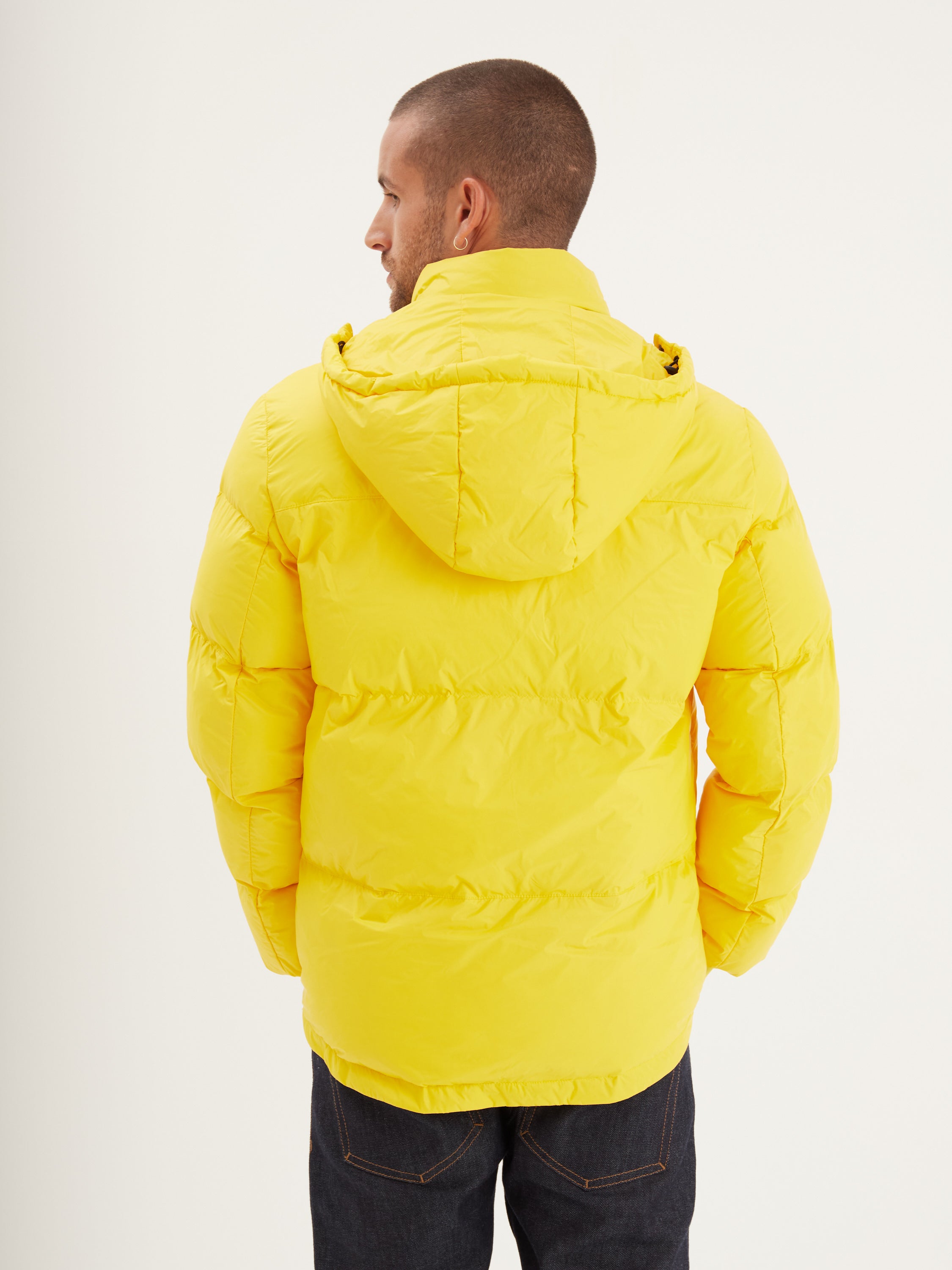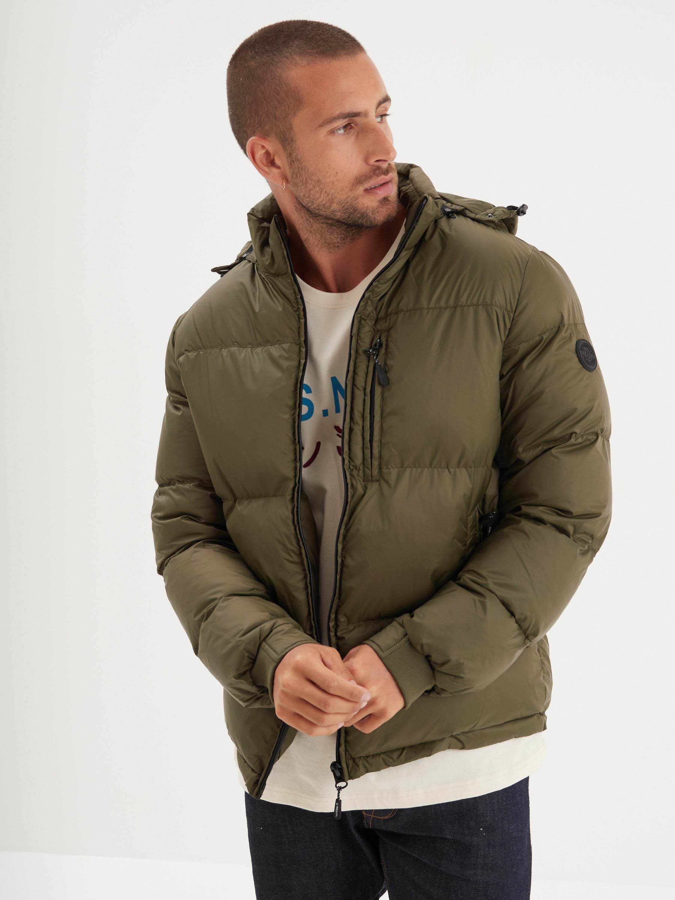 Le mannequin mesure 1.80m, il porte la doudoune en taille M.