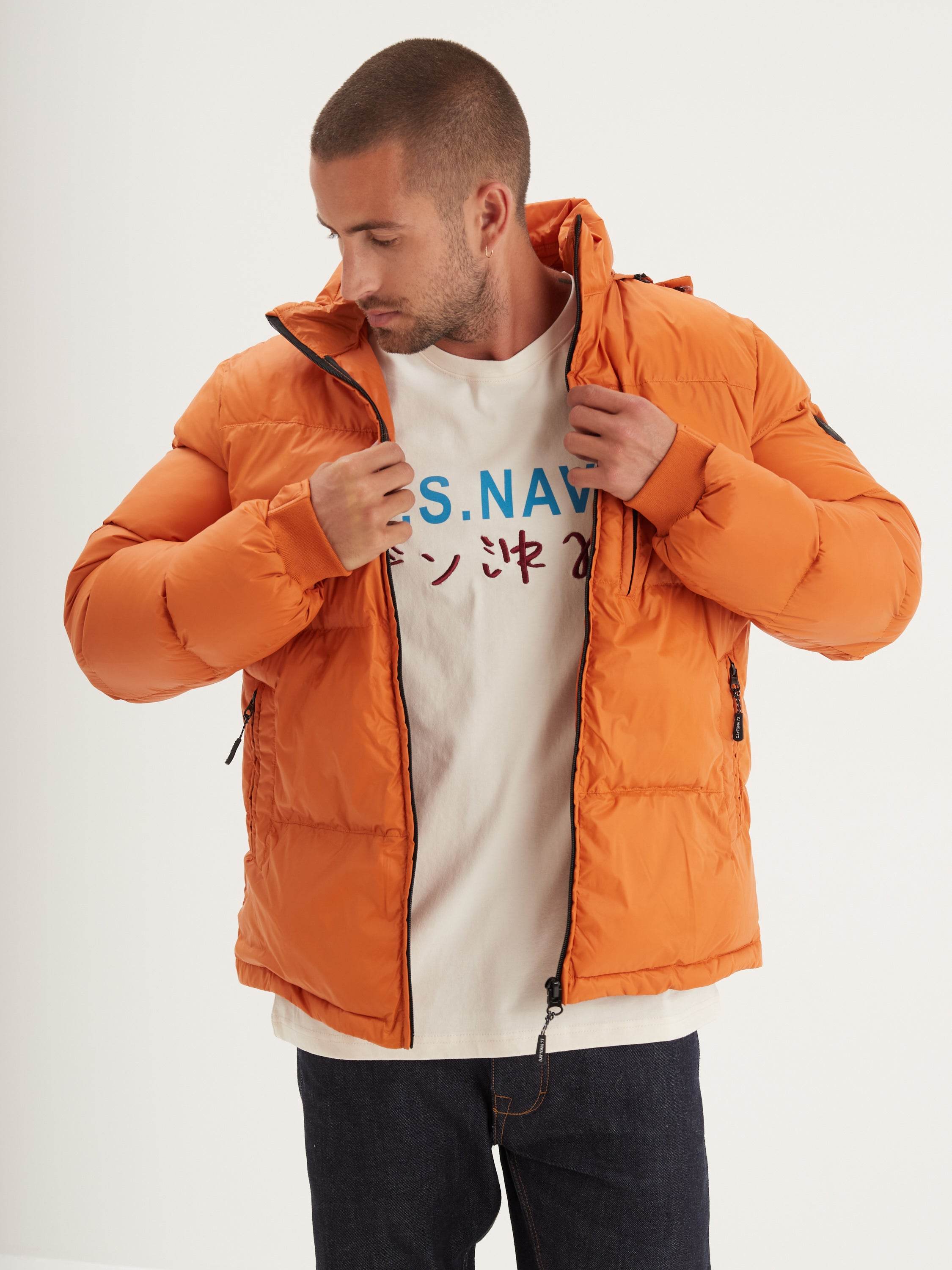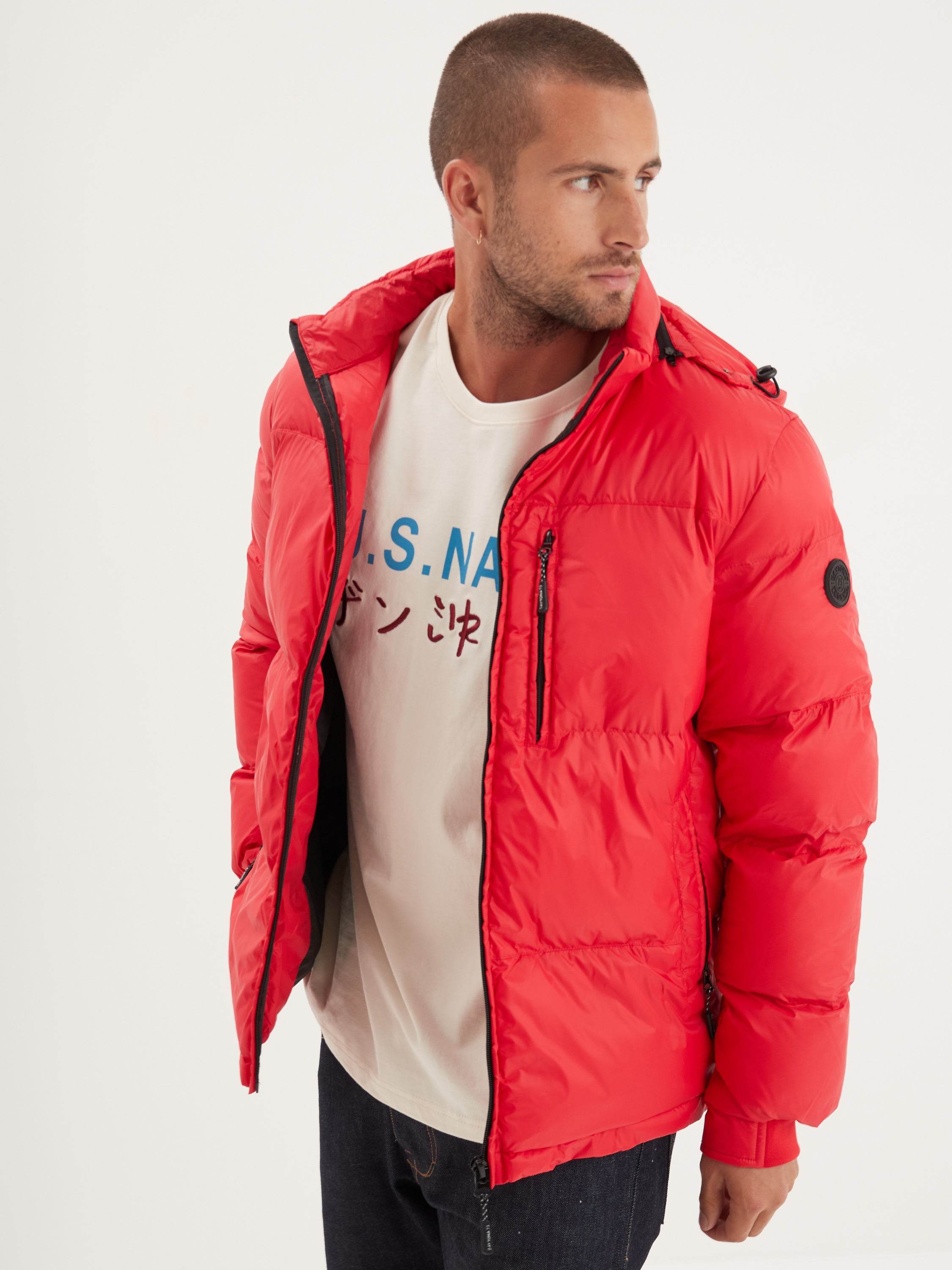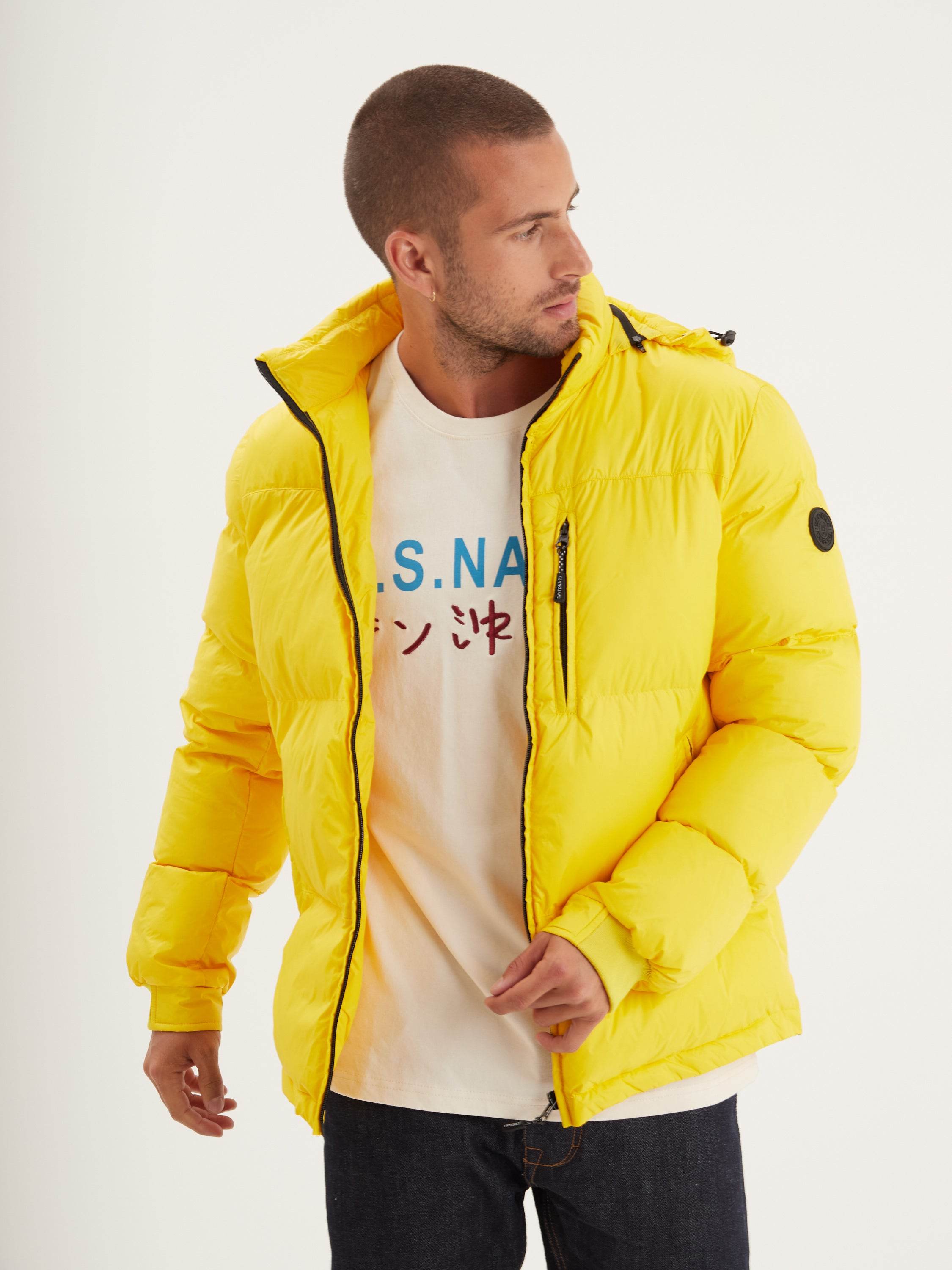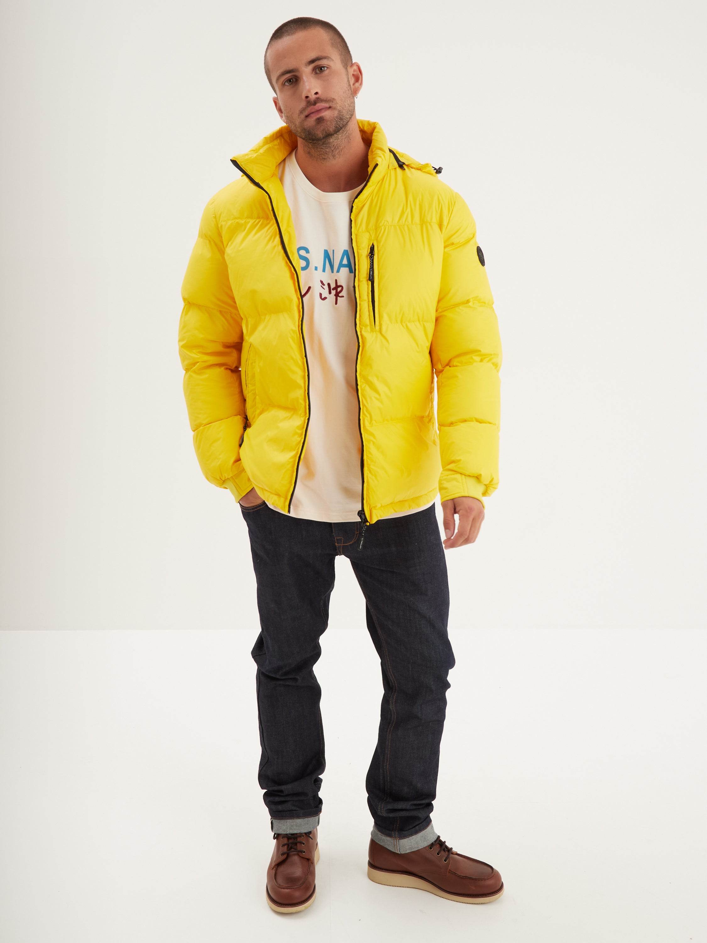 Le mannequin mesure 1.80m, il porte la doudoune en taille M.