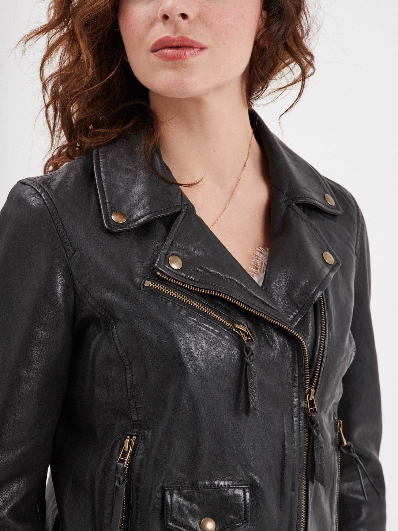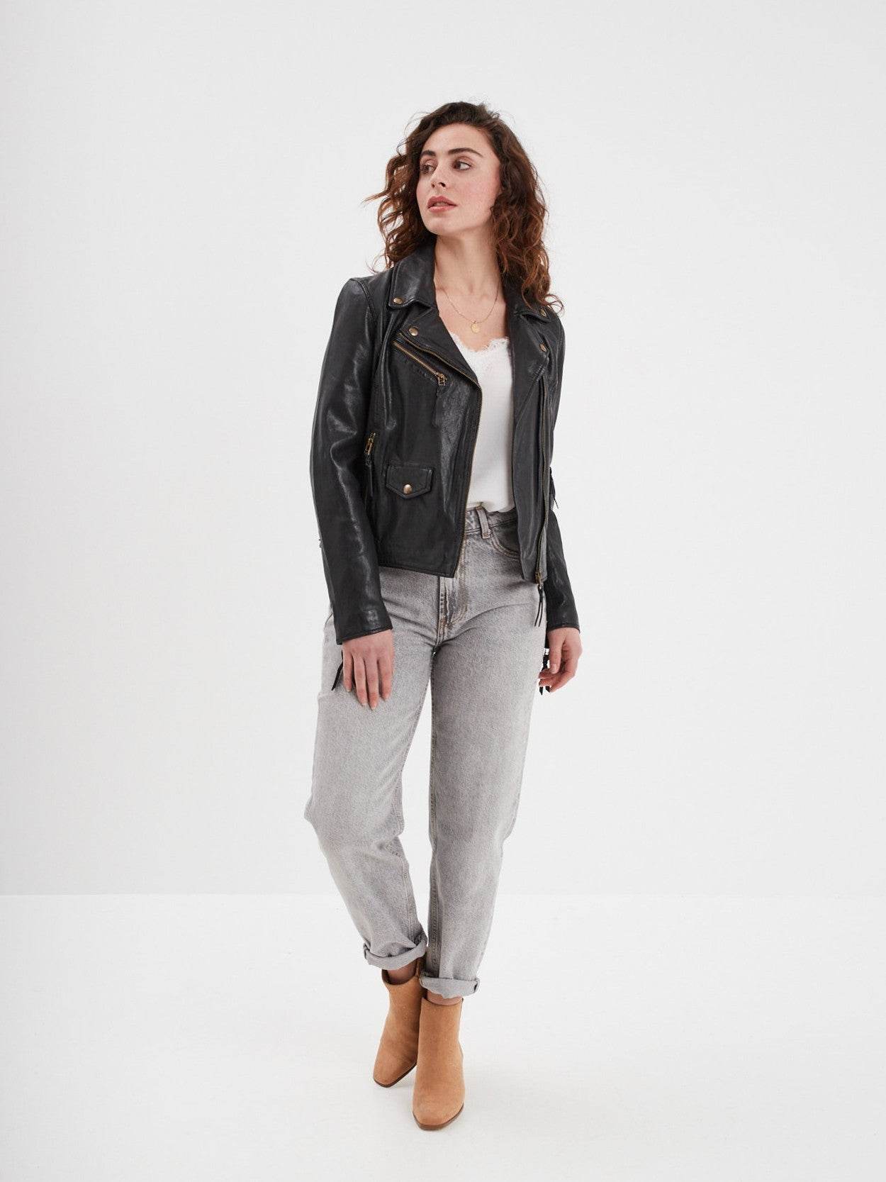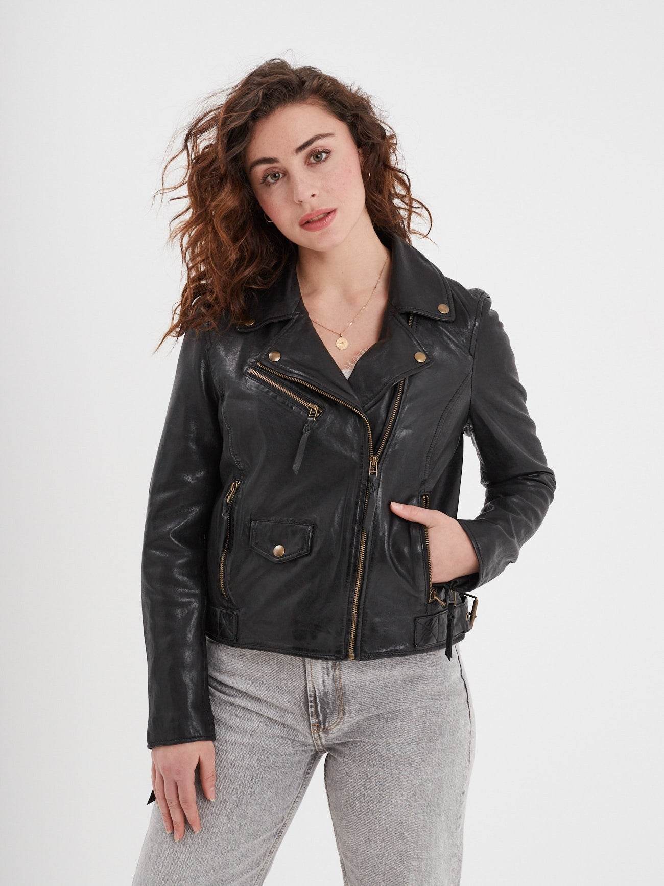 Facilement reconnaissable avec son long col V en revers asymétrique, il est apprécié pour sa coupe cintrée et ses nombreux détails (clous, boucles, surpiqûres...). Aujourd'hui, il traverse les modes sans jamais se démoder, trouvant sa place aussi bien dans les garde-robes des amateurs de rock que chez les passionnés de mode. Enfilez un blouson biker, et vous portez une part d'histoire, un morceau de culture, et une déclaration d'audace.
