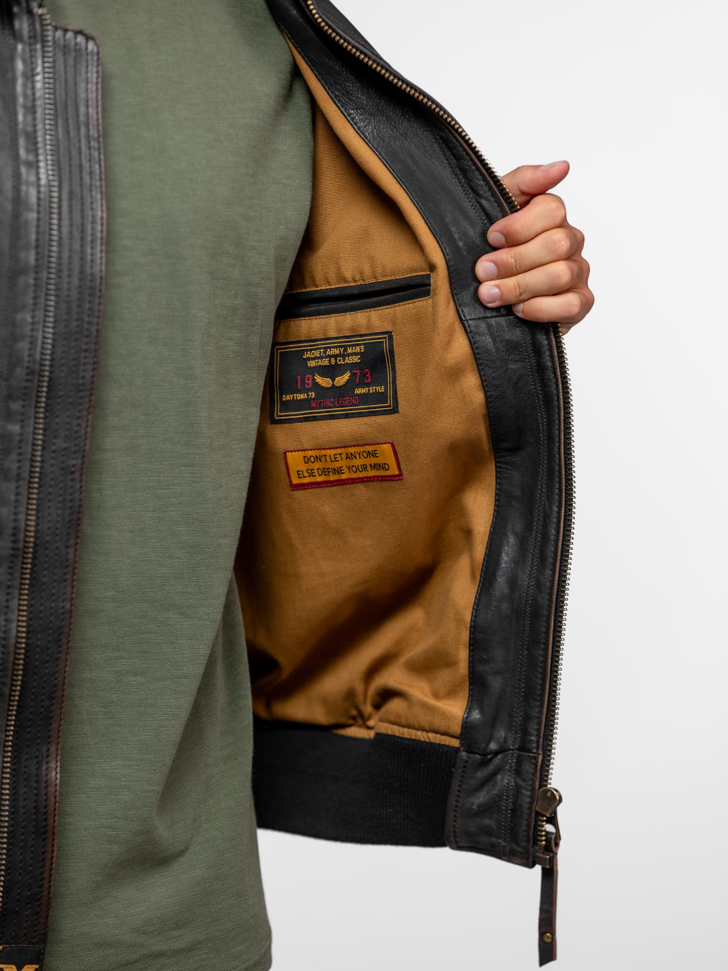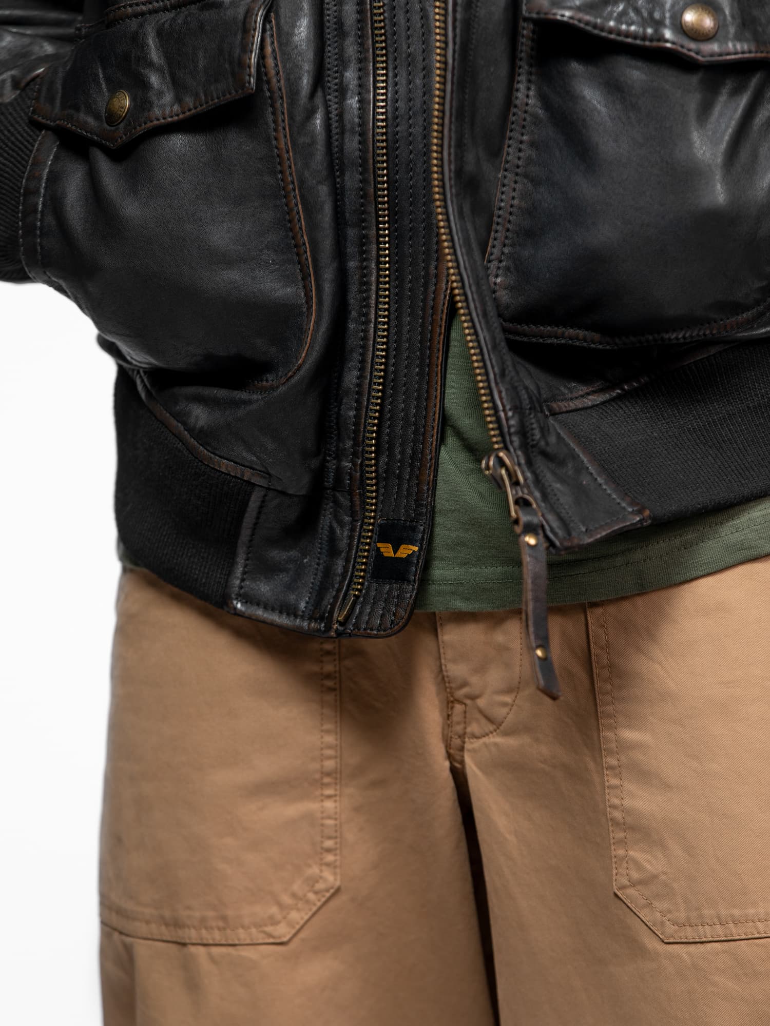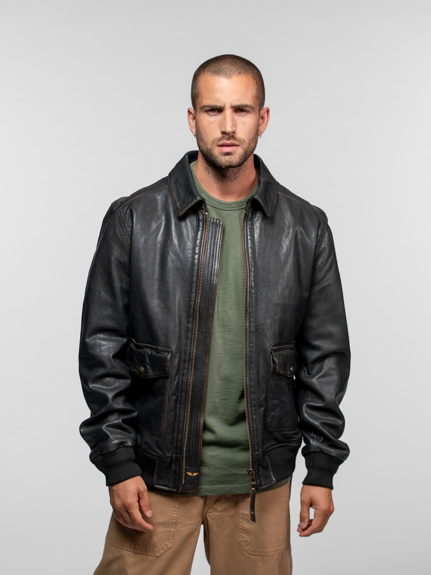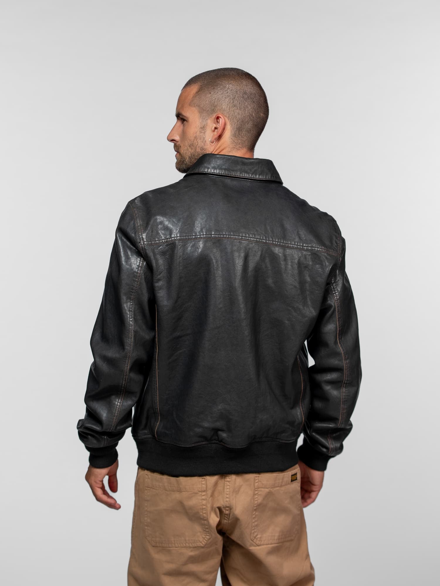 Un classique revisité avec une coupe authentique et une finition en cuir d'agneau vieilli. Ce blouson combine confort et style grâce à son col chemise, ses poignets et taille côtelés.