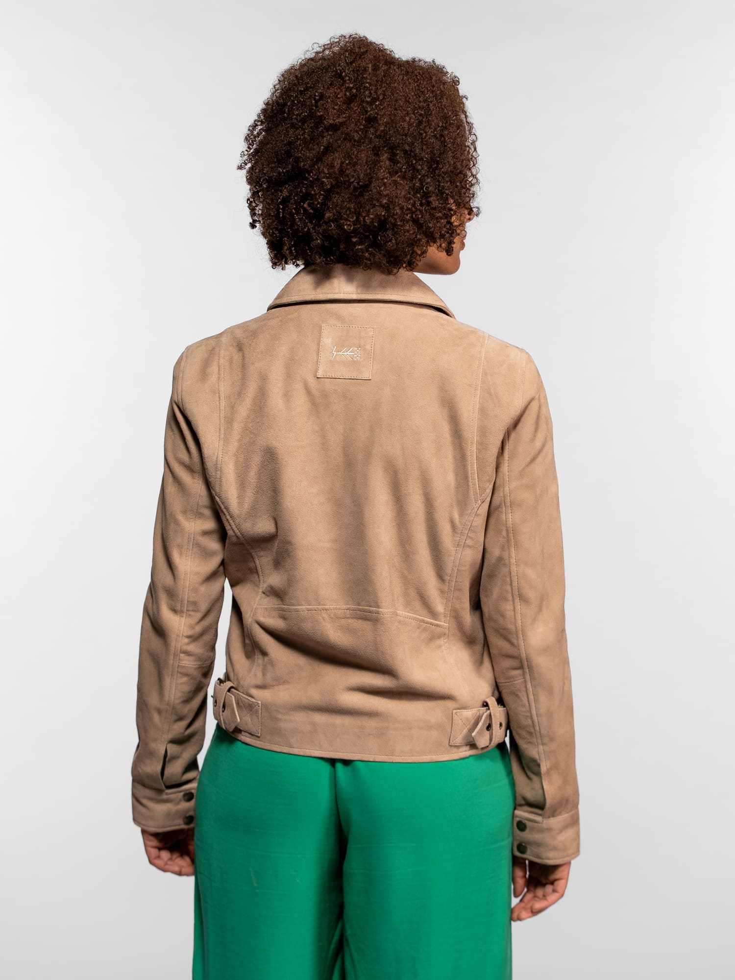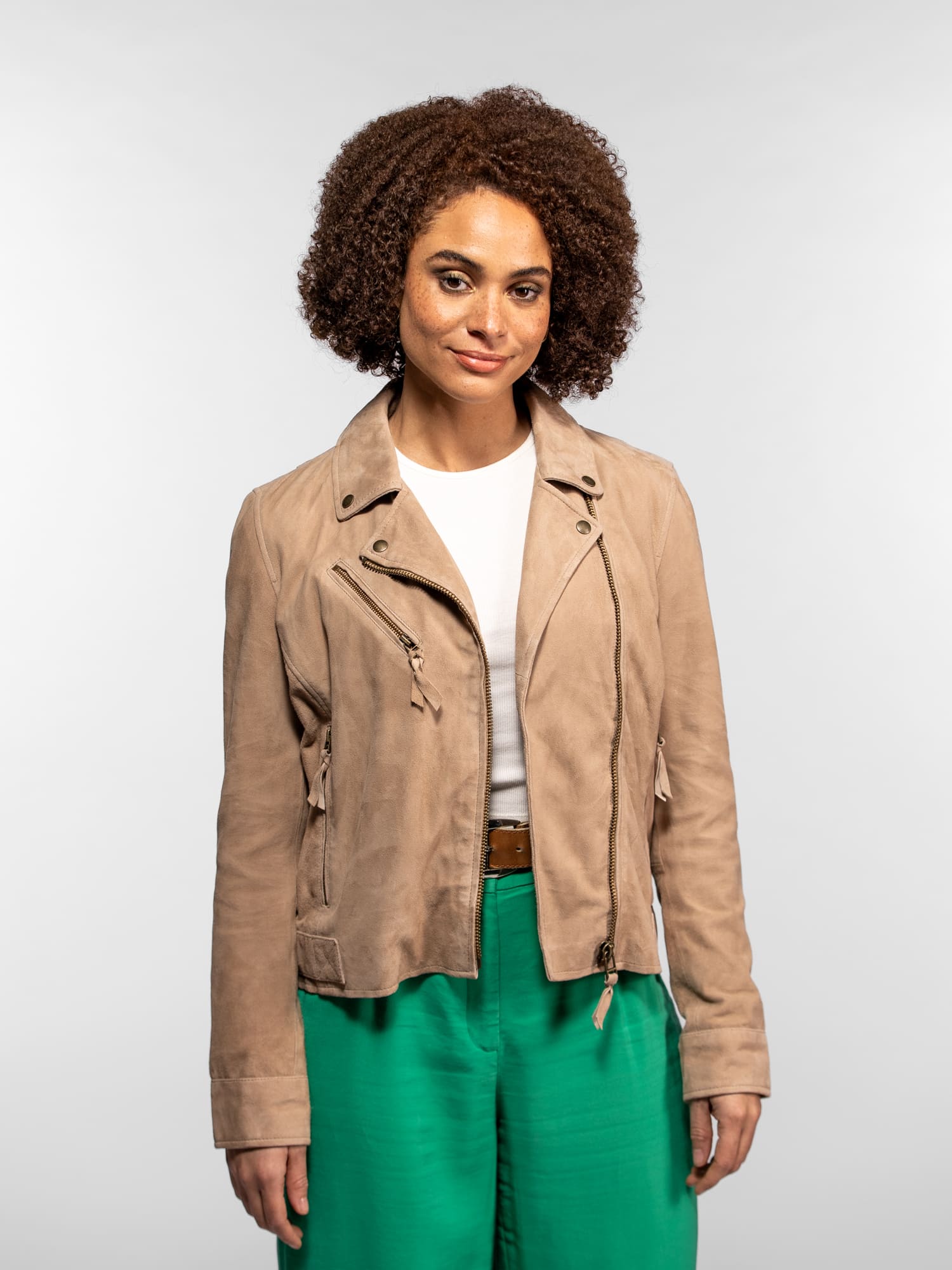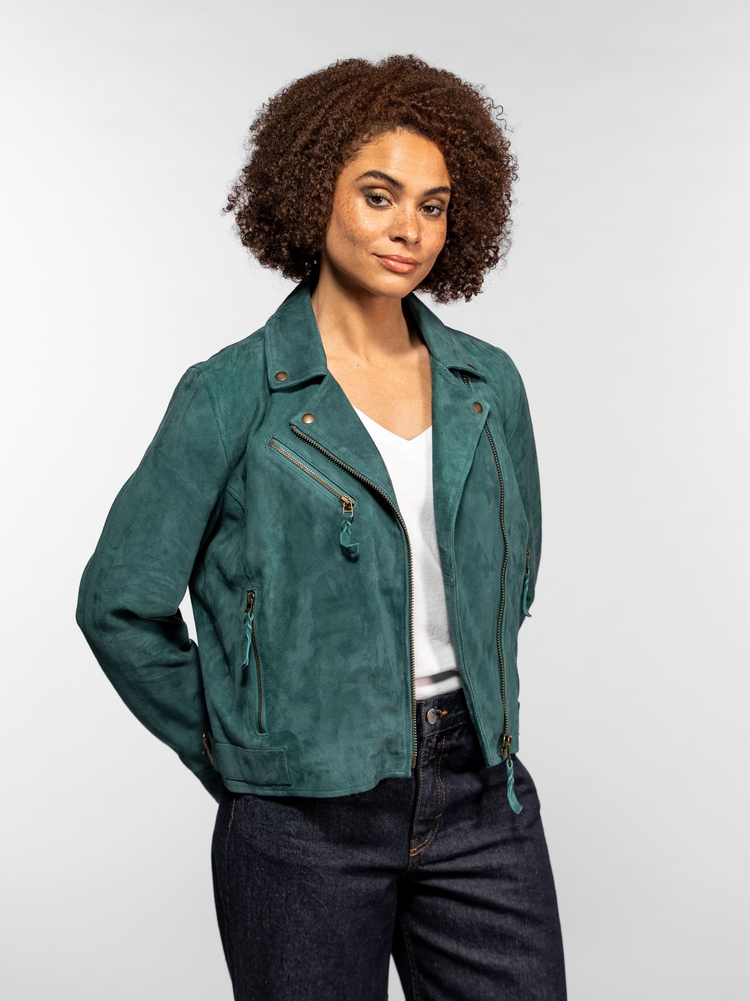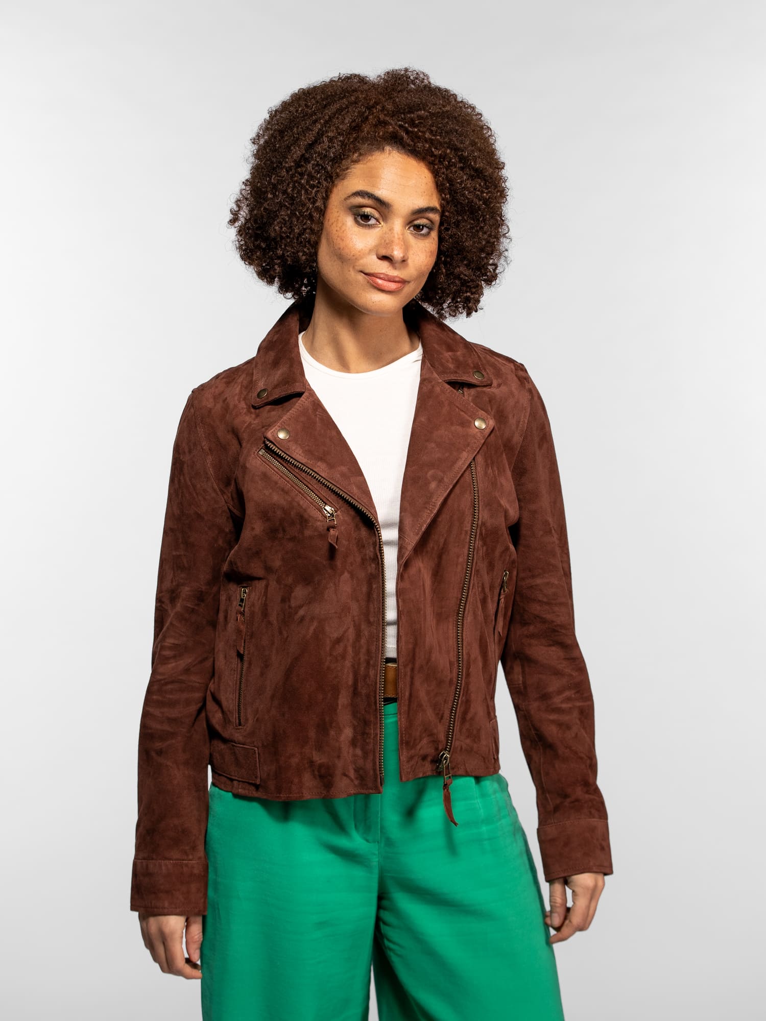 Le blouson femme Fern suede séduit par son toucher velouté et sa coupe ajustée qui met en valeur la silhouette. Il se distingue par ses zips apparents, ses finitions soignées et sa doublure léopard qui apporte une touche audacieuse. Une pièce de caractère, facile à porter au quotidien.