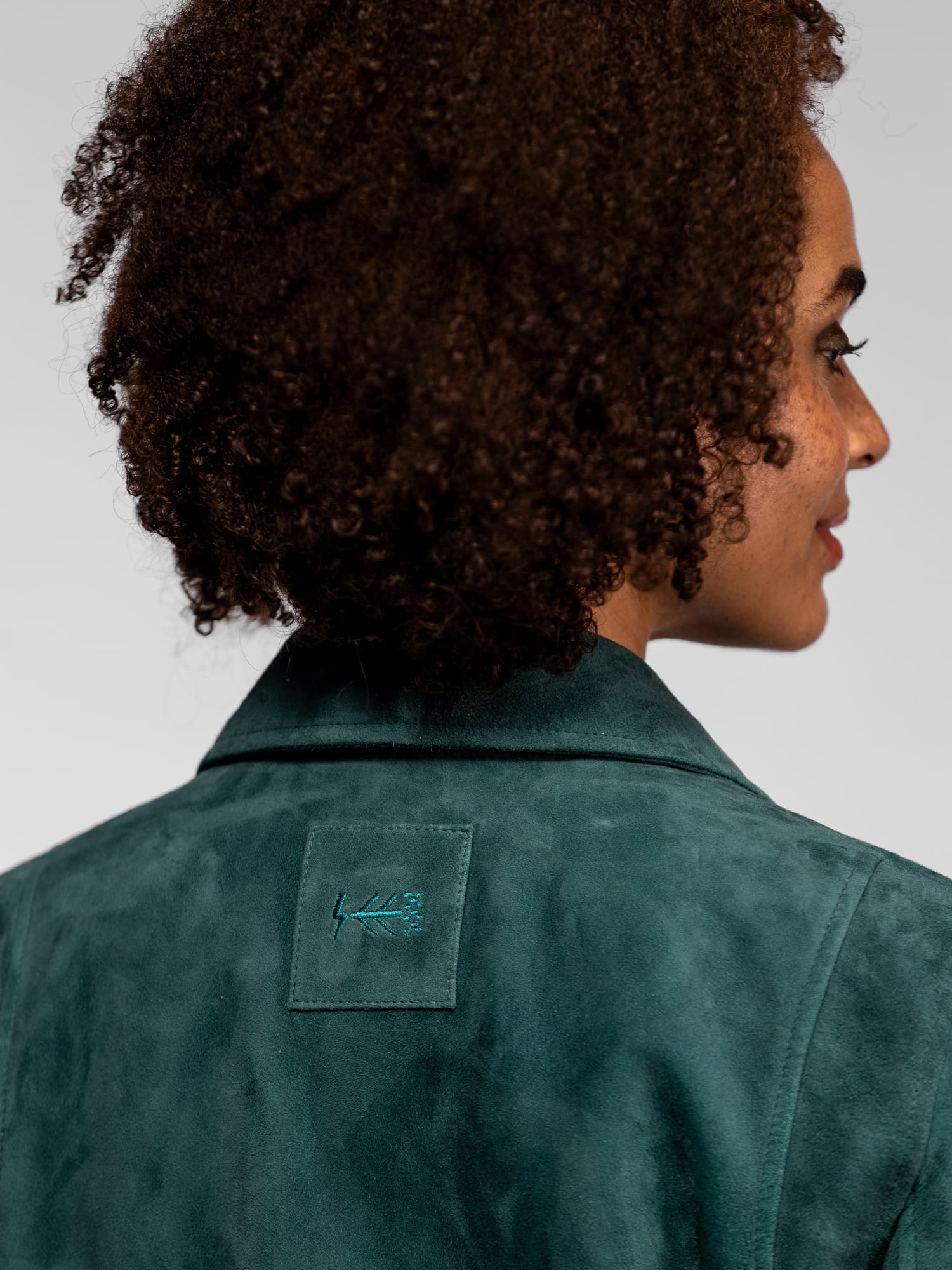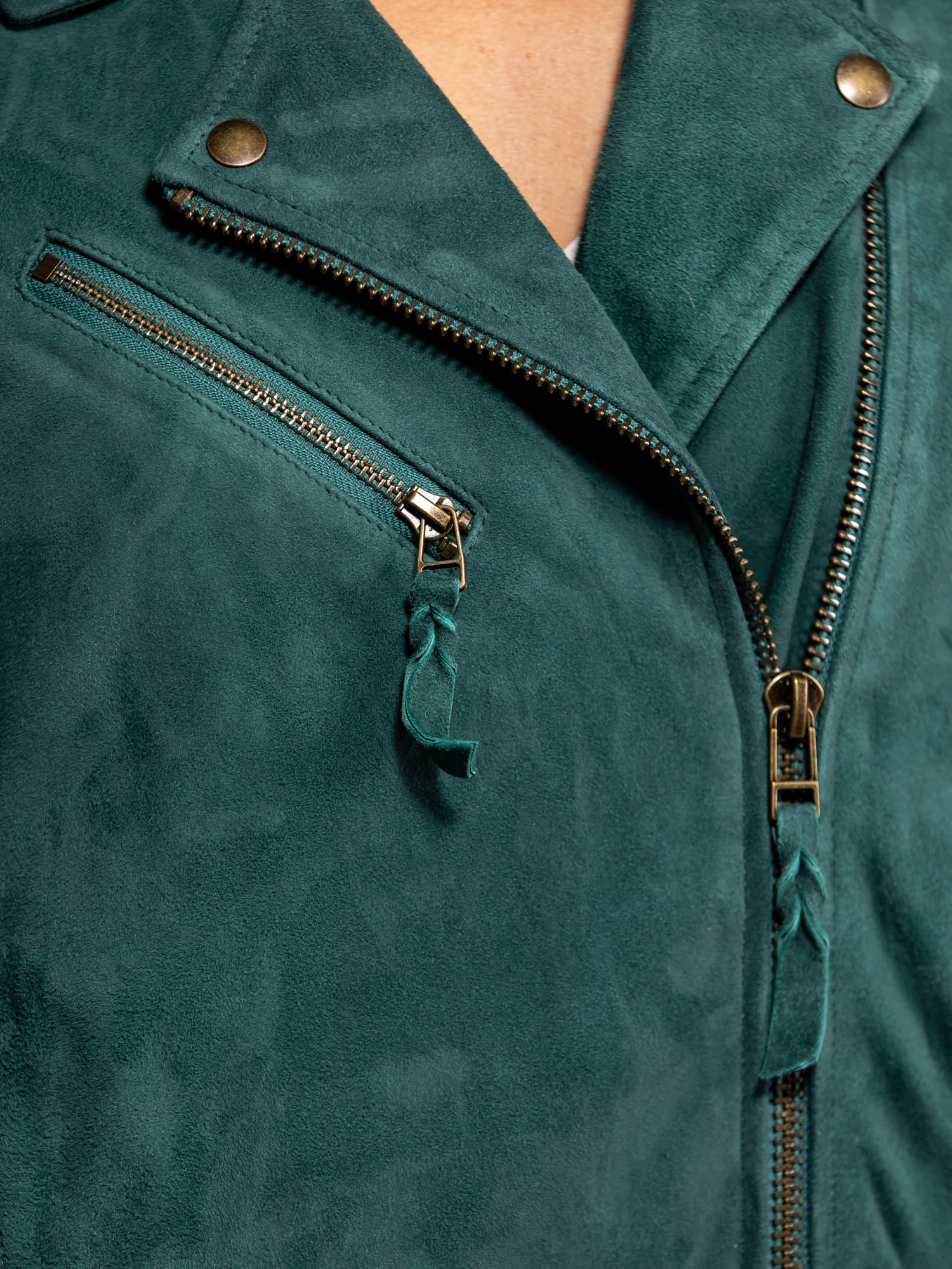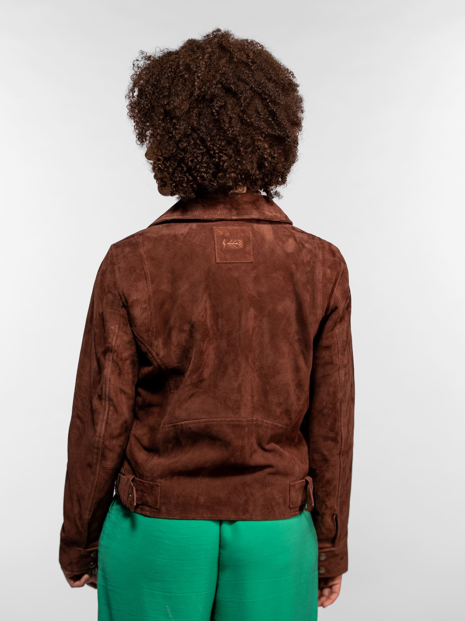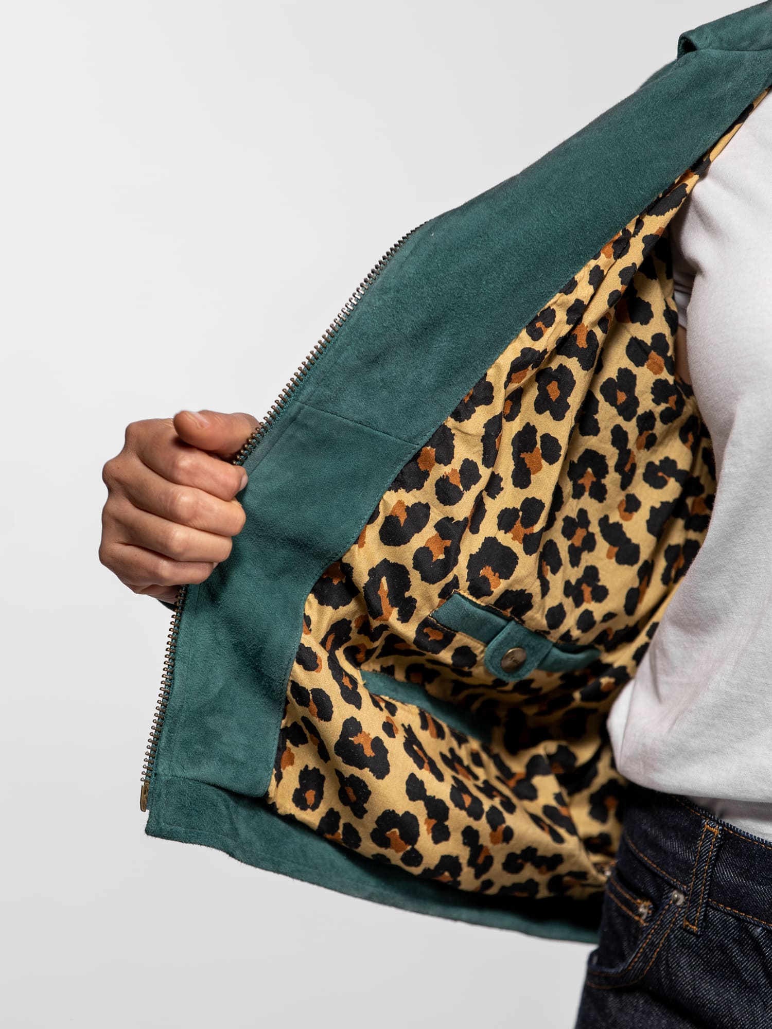 Le blouson femme Fern suede séduit par son toucher velouté et sa coupe ajustée qui met en valeur la silhouette. Il se distingue par ses zips apparents, ses finitions soignées et sa doublure léopard qui apporte une touche audacieuse. Une pièce de caractère, facile à porter au quotidien.