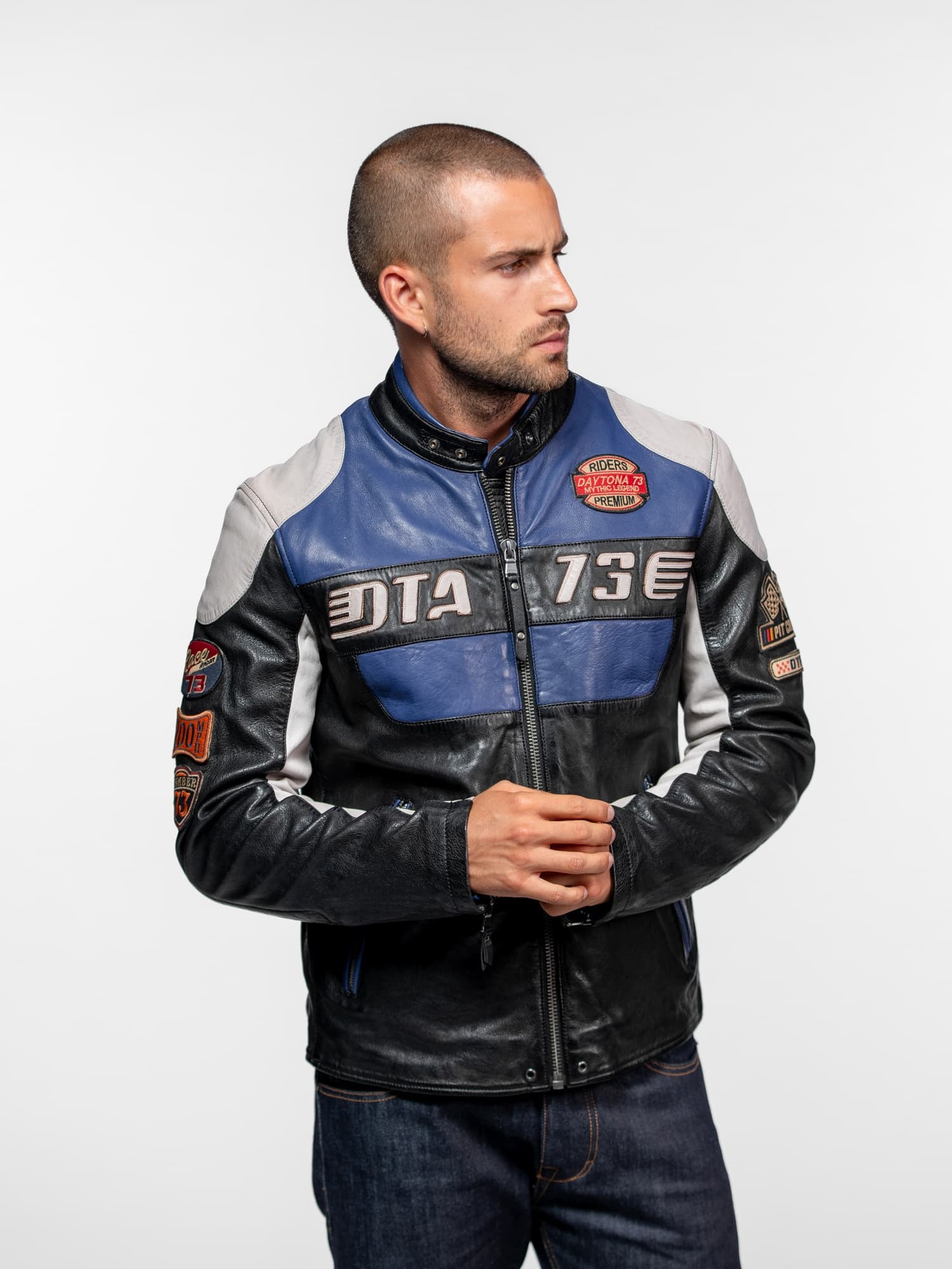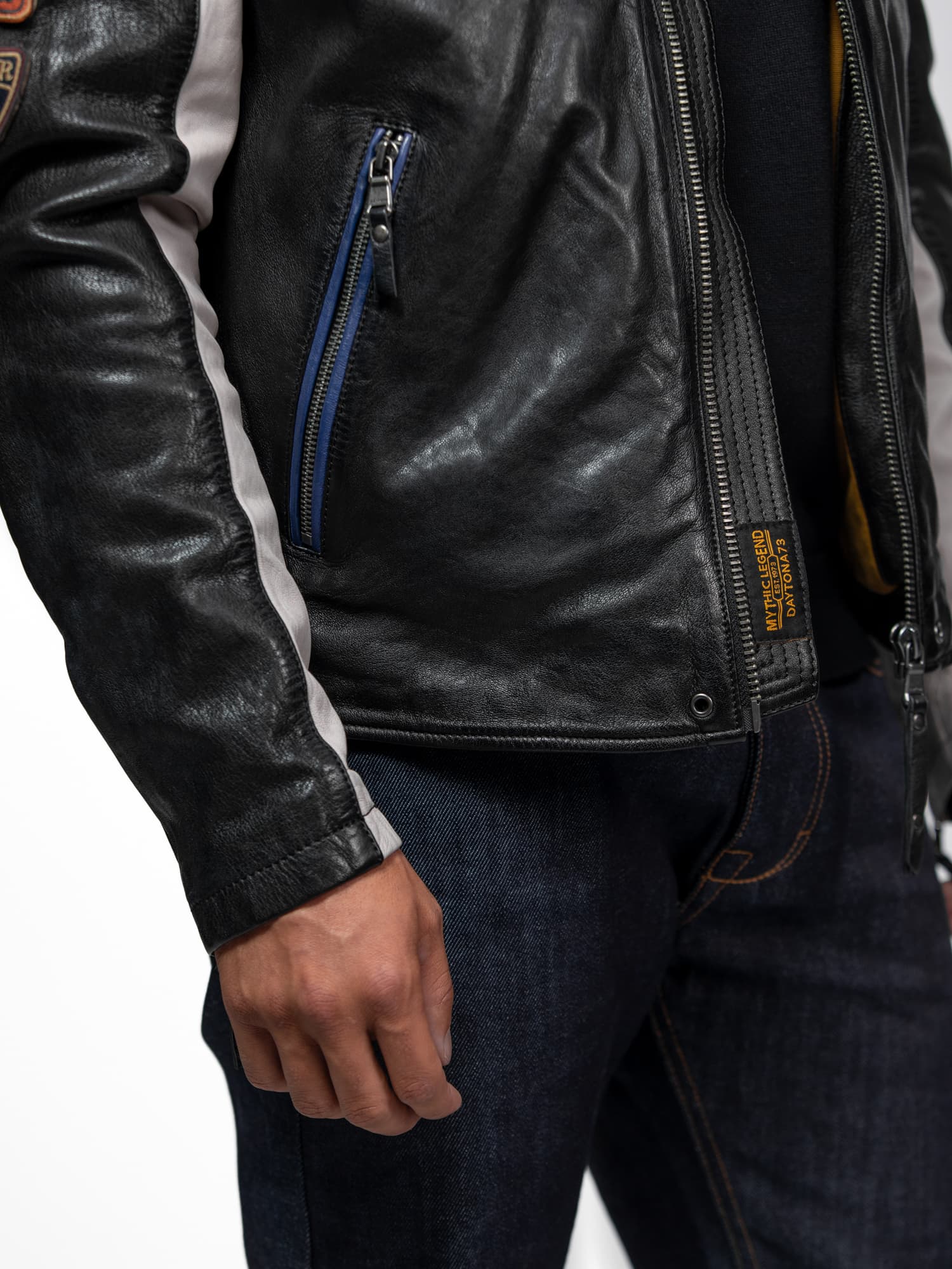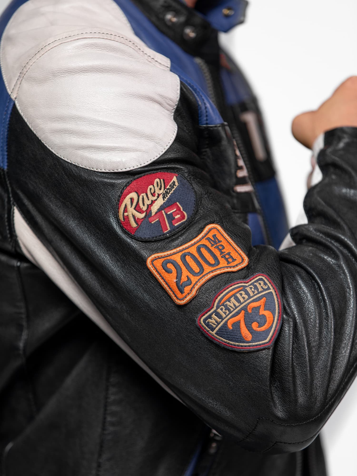 • Patchs brodés esprit moto vintage à la poitrine et au bras
