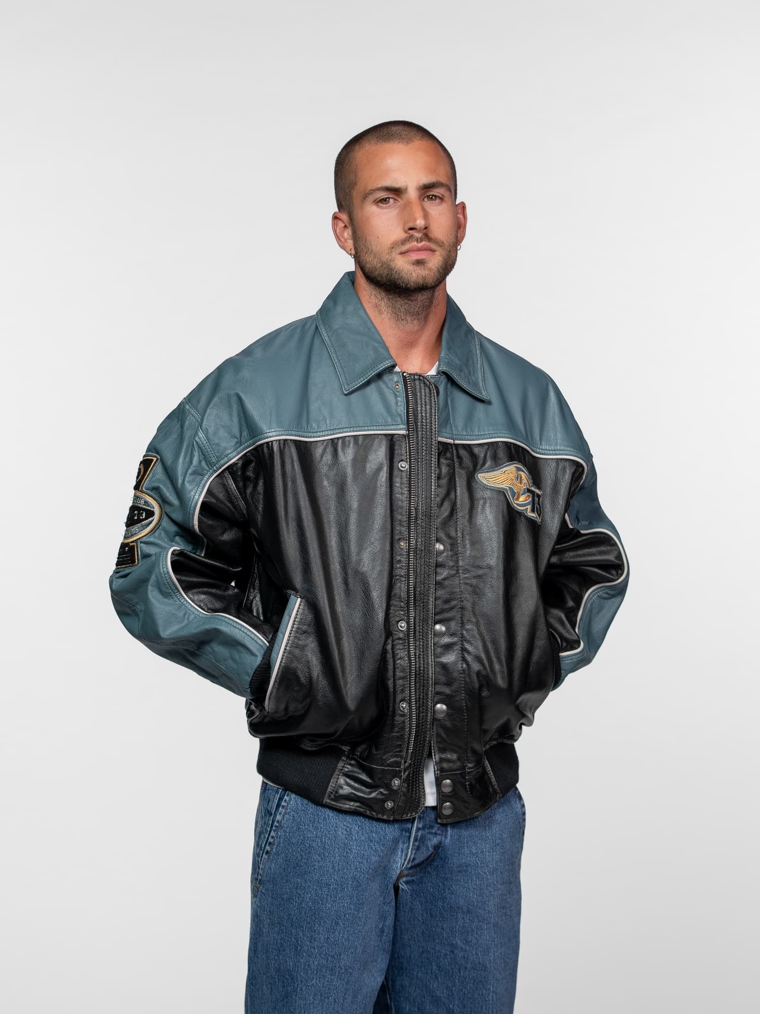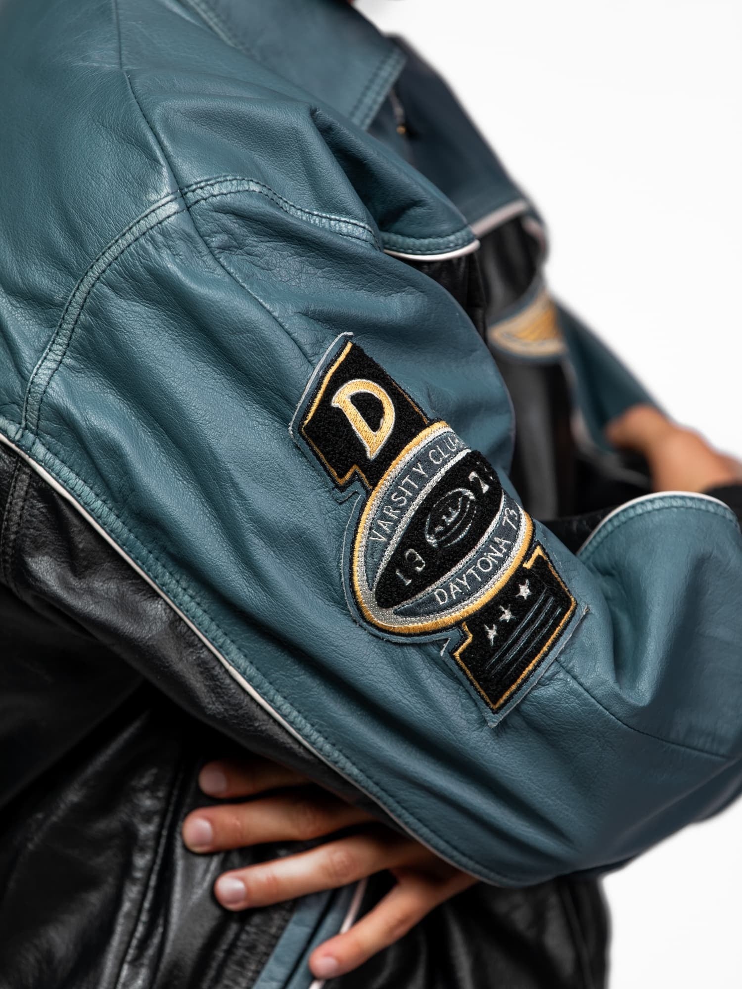 Le blouson teddy, également connu sous le nom de "varsity jacket," est un vêtement emblématique qui trouve ses origines dans les traditions universitaires américaines. Apparu dans les années 1930, il était à l'origine porté par les étudiants-athlètes pour afficher fièrement leur appartenance à une équipe sportive. Il incarne aujourd'hui un style rétro-chic, combinant une allure décontractée avec une touche d'élégance sportive, et reste un symbole fort de l'esprit d'équipe et de la camaraderie.