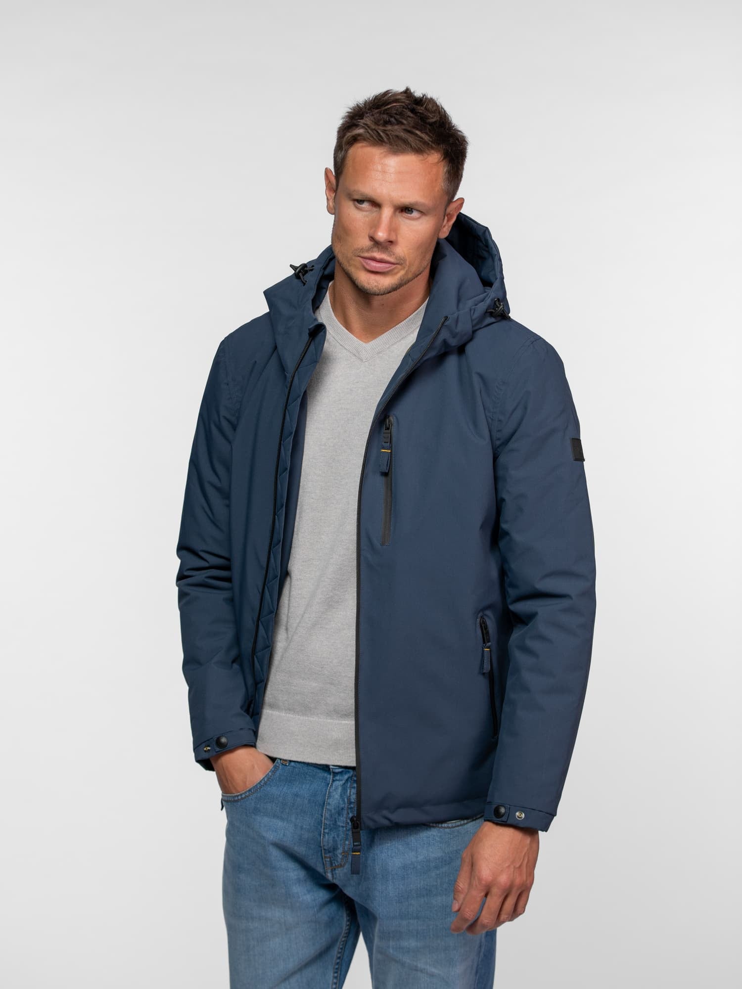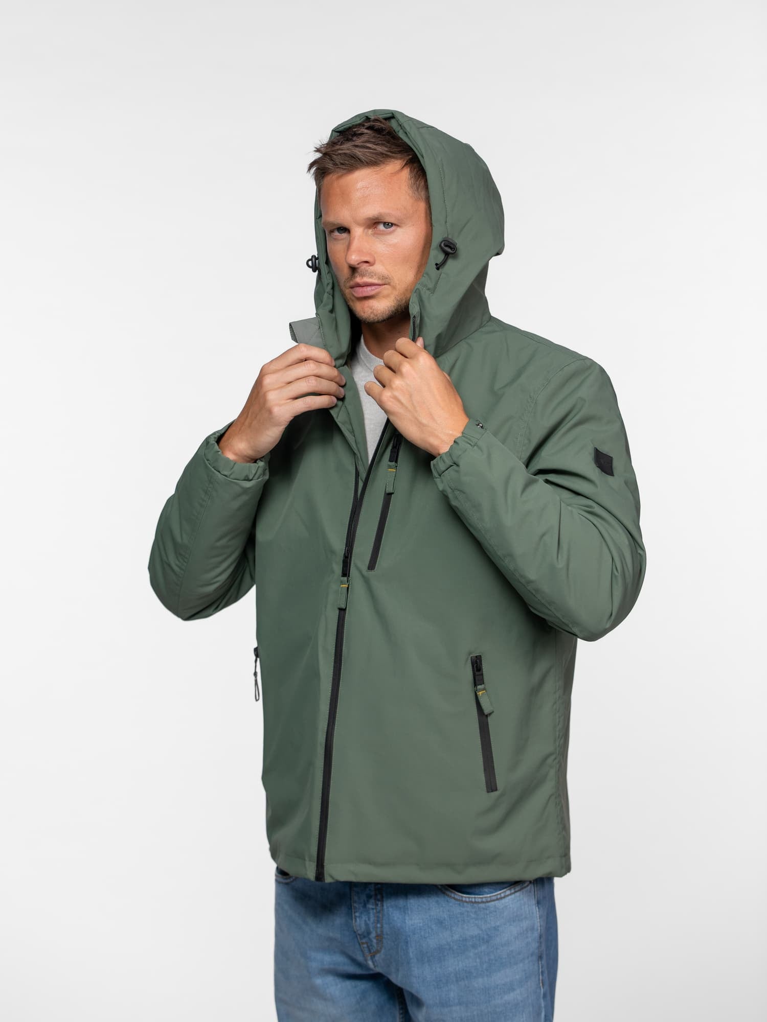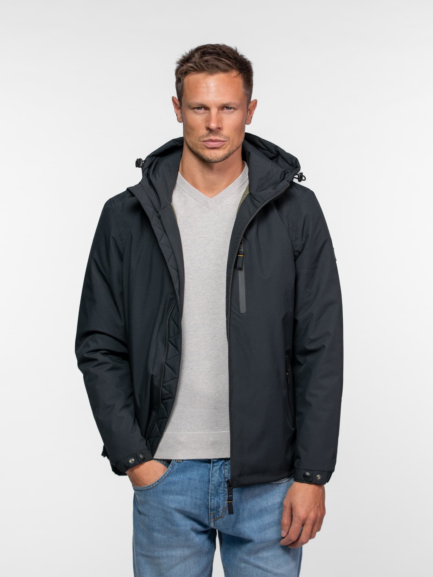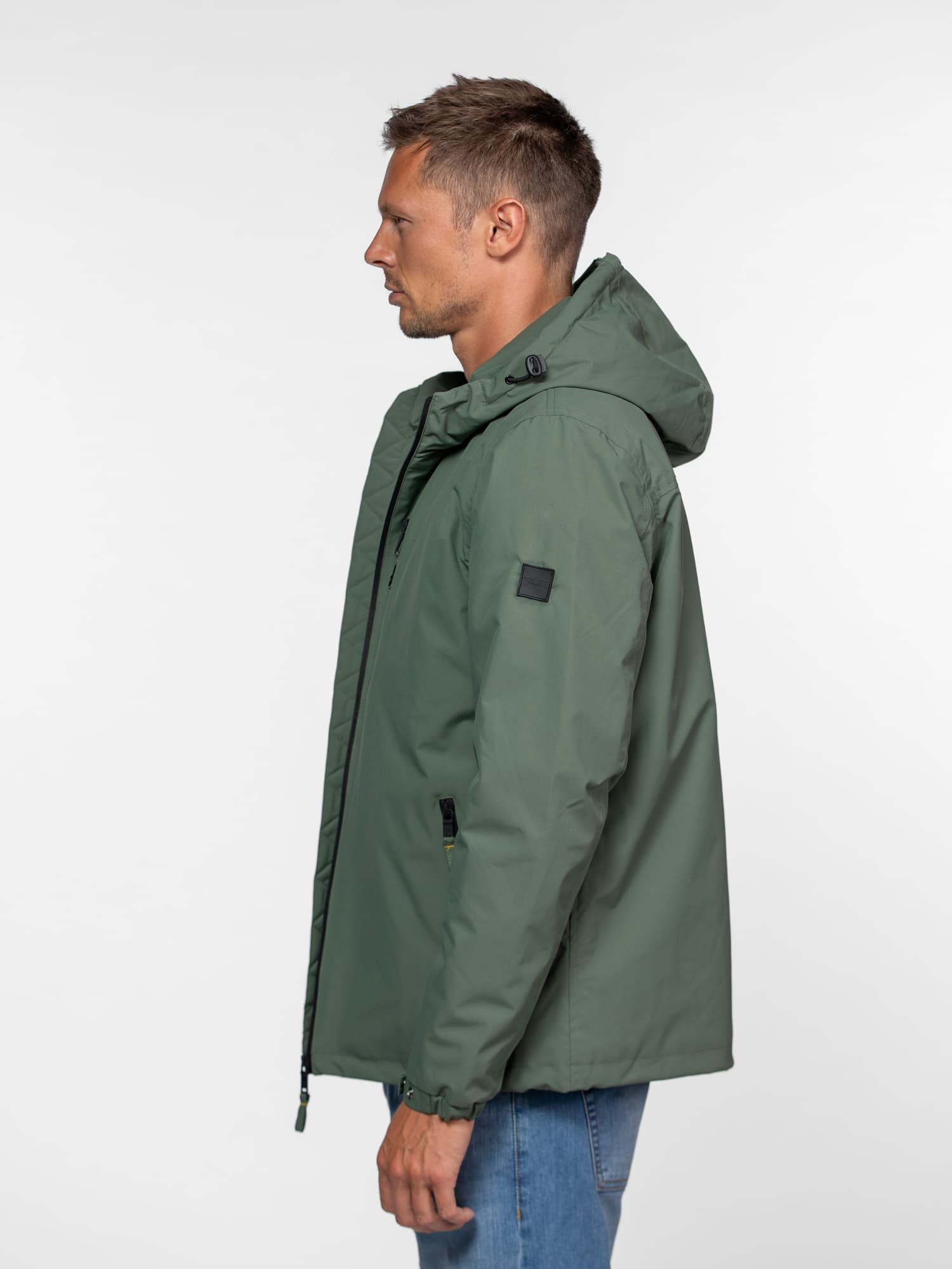 • Capuche ajustable à cordons