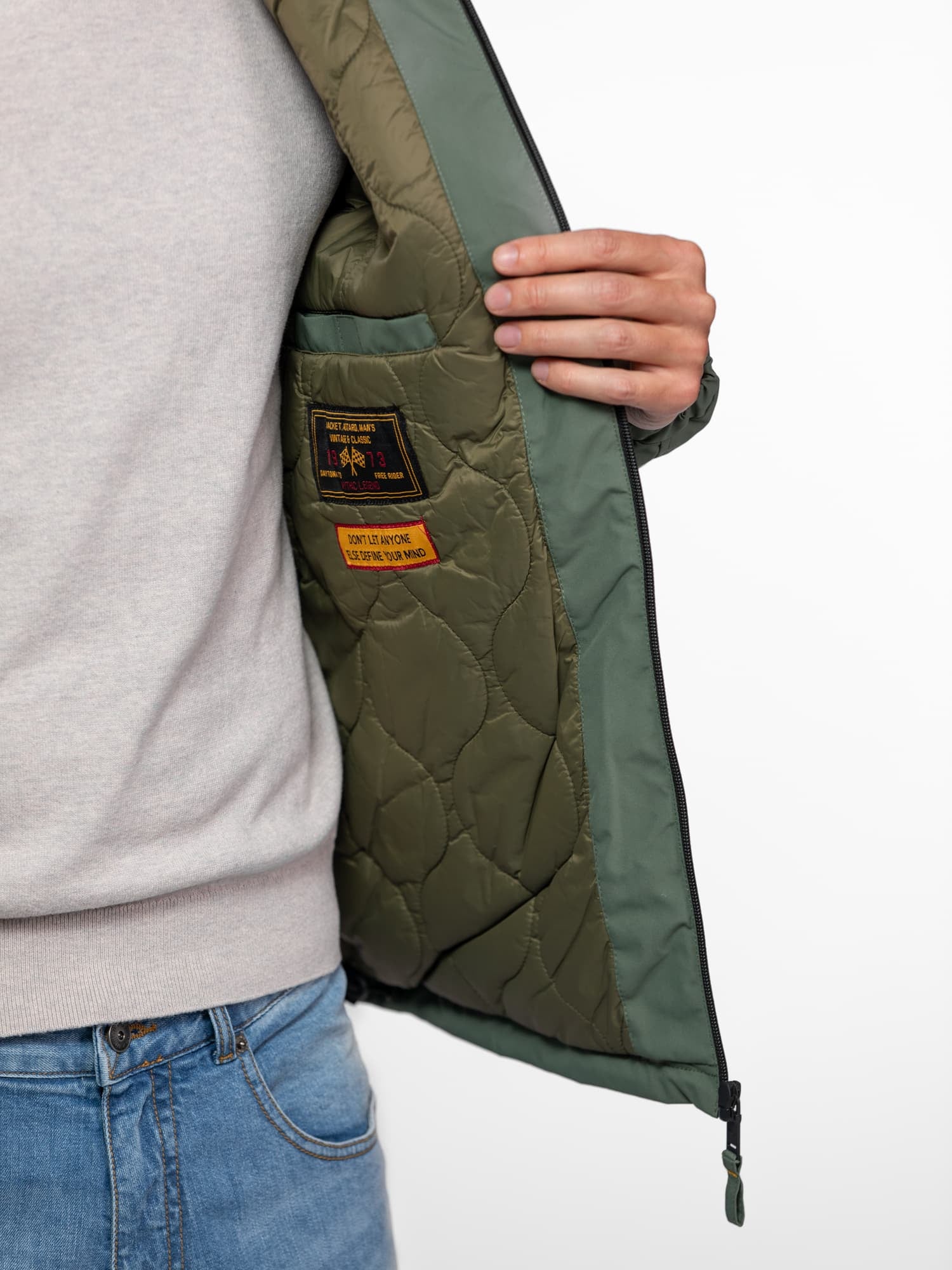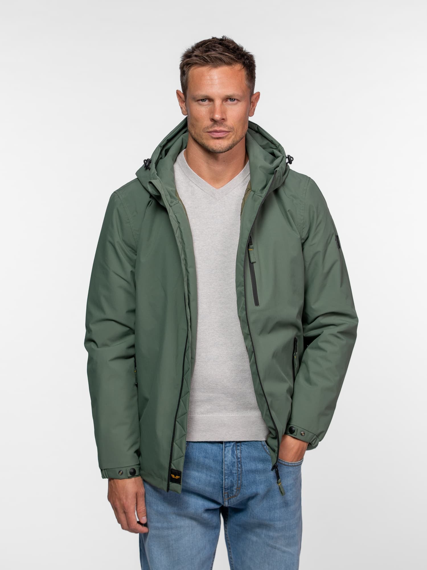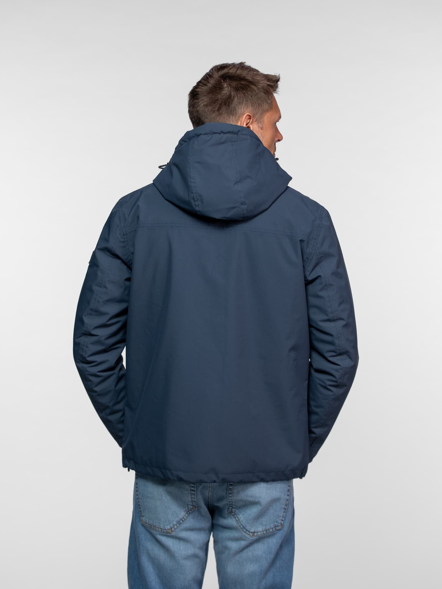 Le mannequin mesure 1.85m, il porte la parka en taille L.