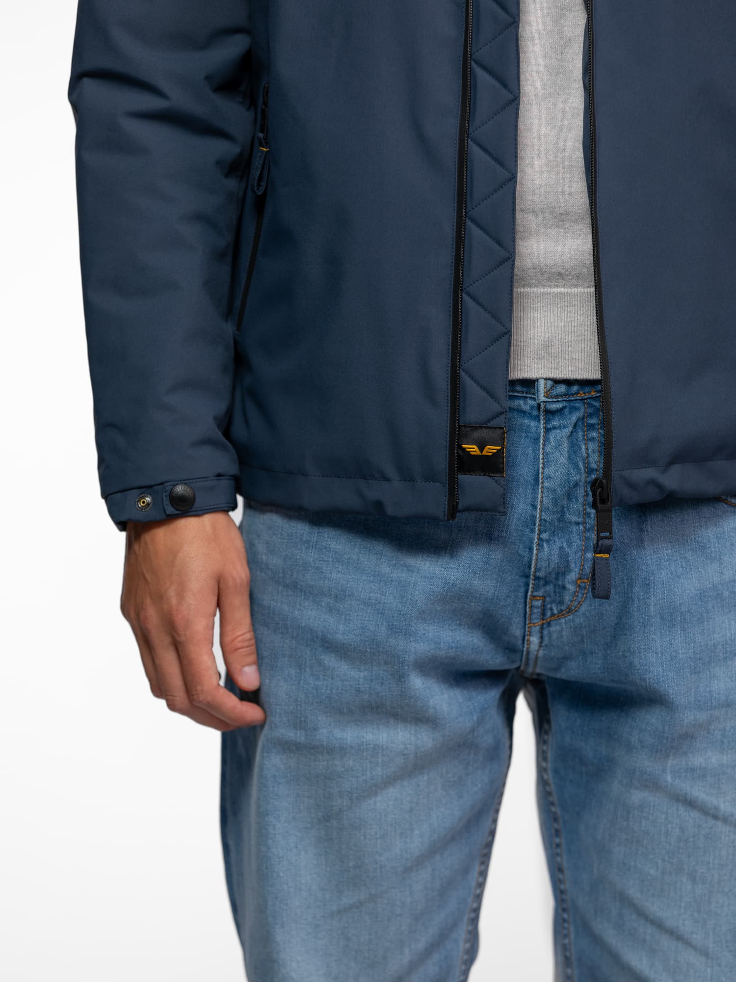 La coupe de cette parka courte offre une silhouette moderne, tandis que son tissu imperméable protège de la pluie. La capuche ajustable renforce la protection contre le vent, et la doublure en Sorona, une fibre éco-responsable, garantit chaleur et légèreté.