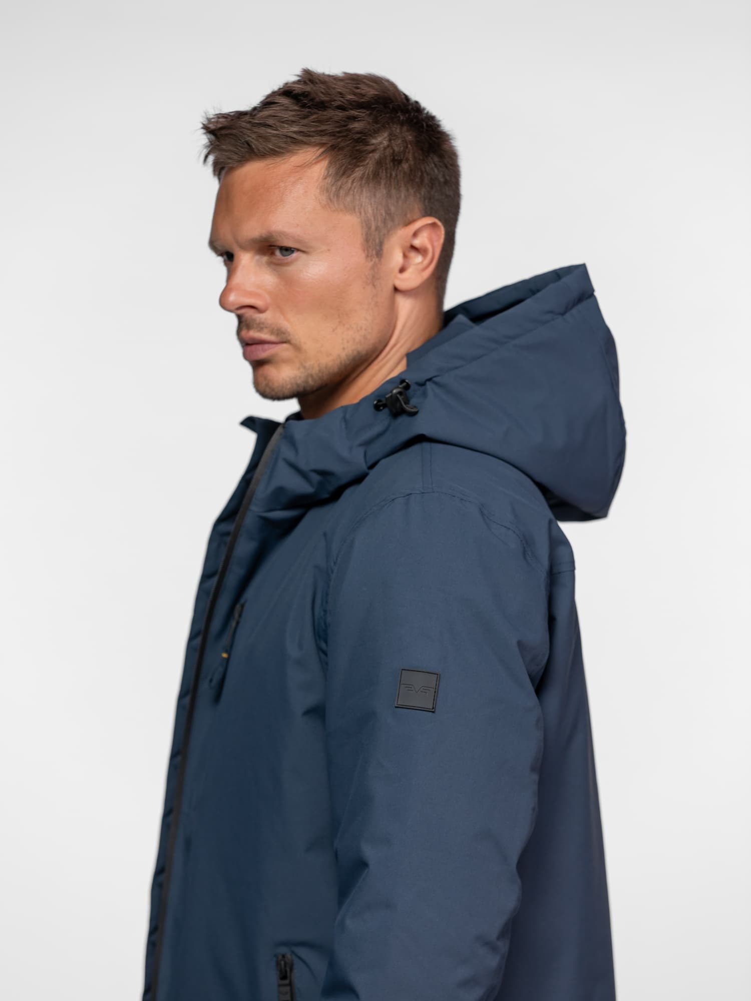 Le mannequin mesure 1.85m, il porte la parka en taille L.