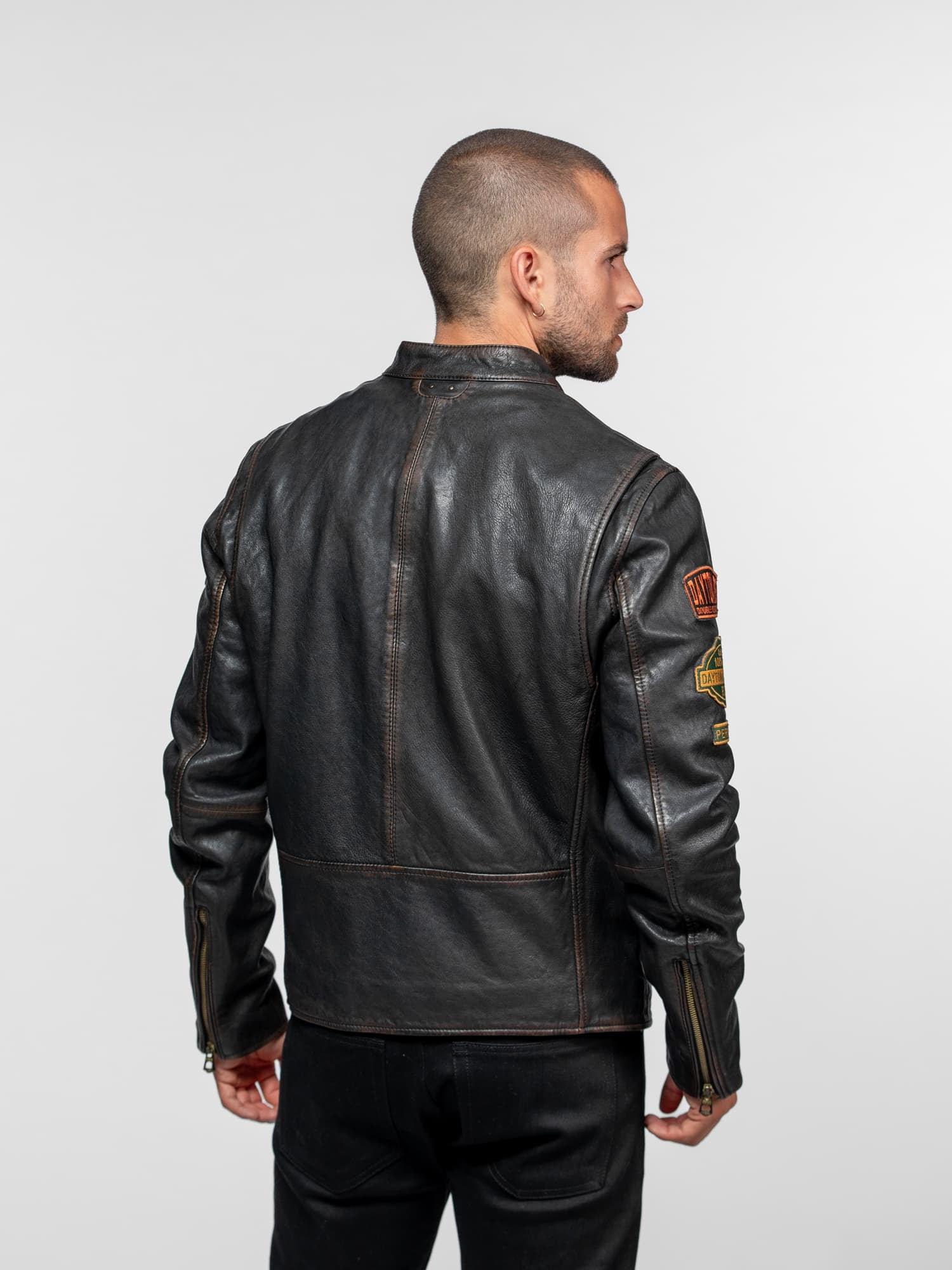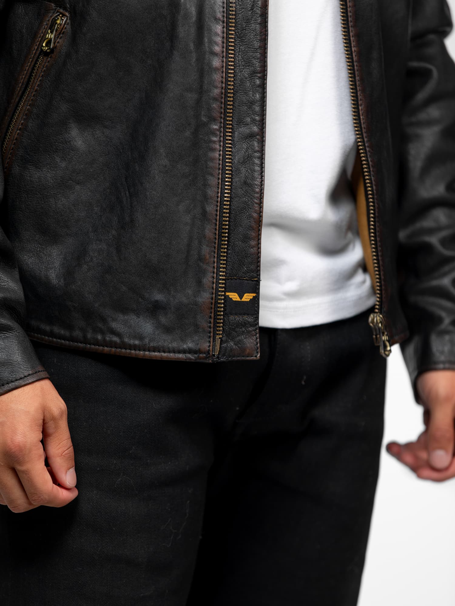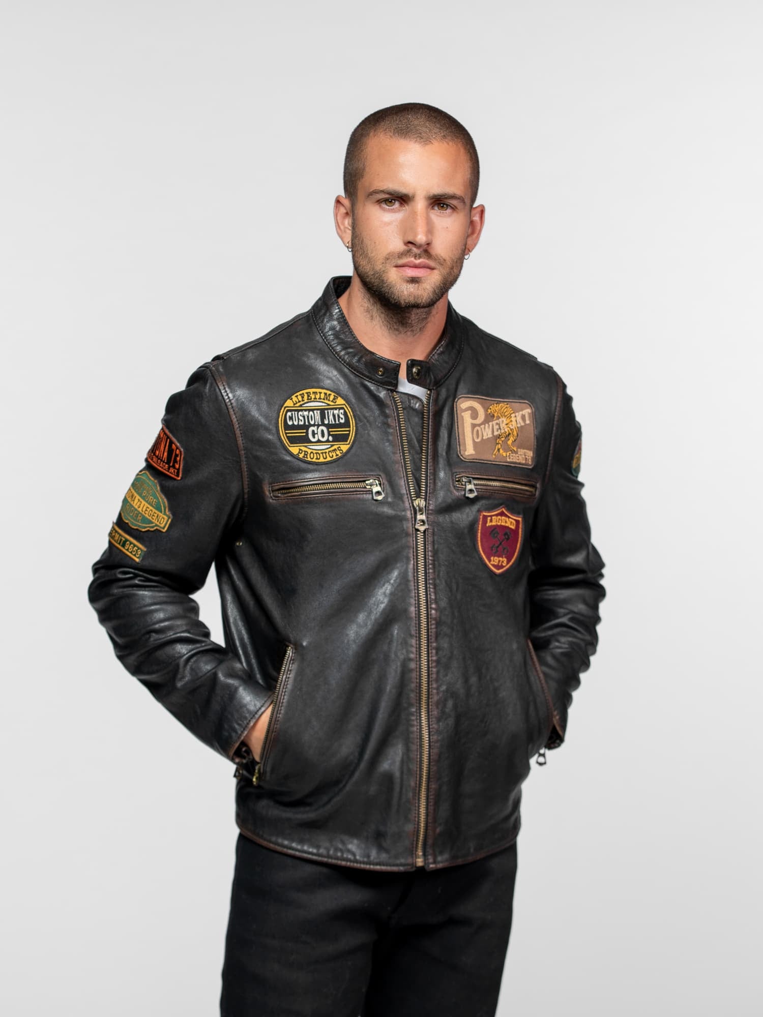 Véritable blouson de caractère, ce modèle a été fabriqué dans un cuir d'agneau vieilli avec des patchs brodés au style vintage. Devenu un modèle iconique pour sa patine unique, ce blouson possède une coupe ajustée et sera probablement le coupe de cœur de votre vestiaire.