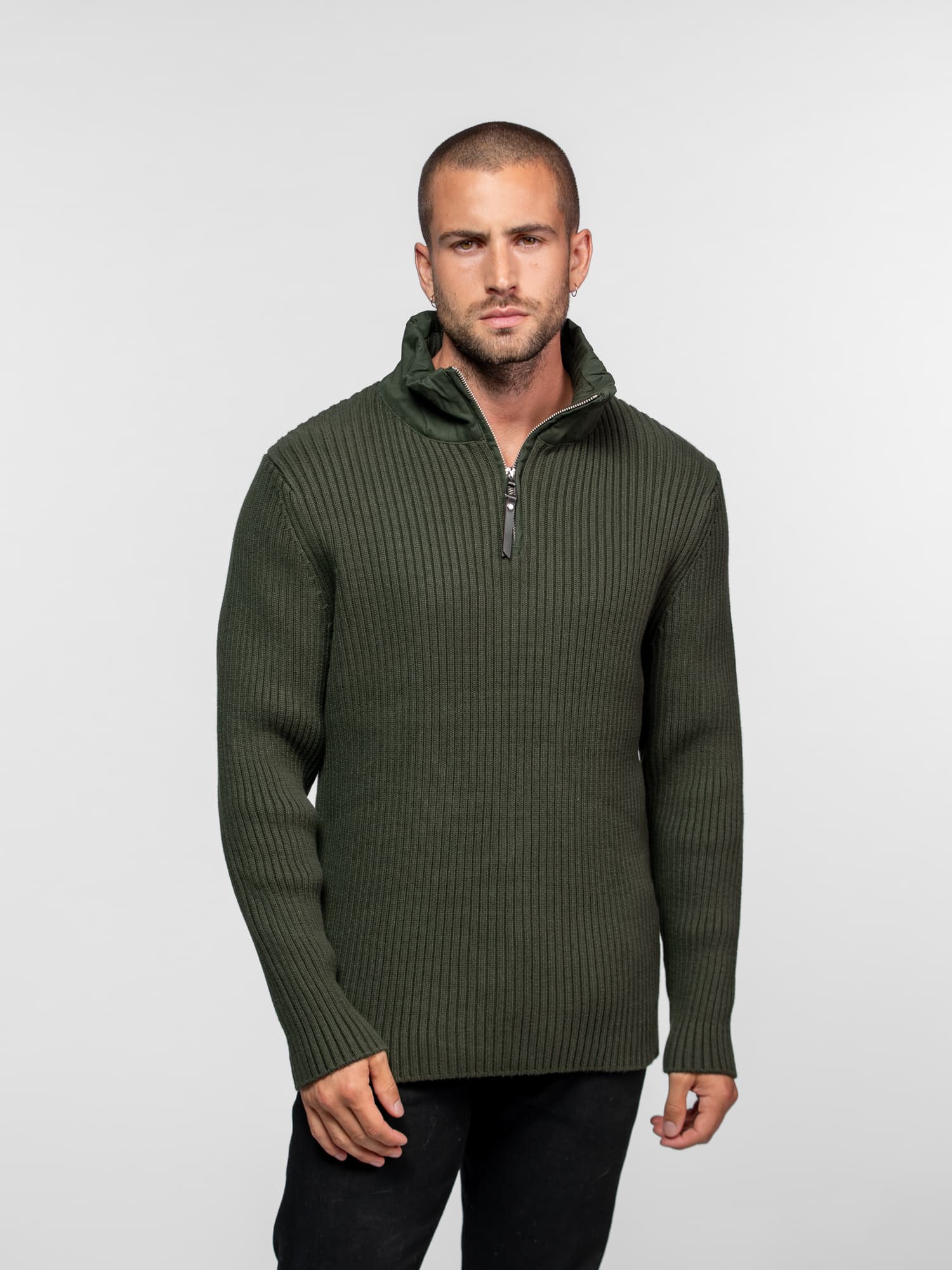Le pull camionneur est un classique du vestiaire masculin. Tricoté avec un coton épais côtelé, il dispose d'un col montant à fermeture éclaire idéal pour éviter les coups de froid à la gorge.