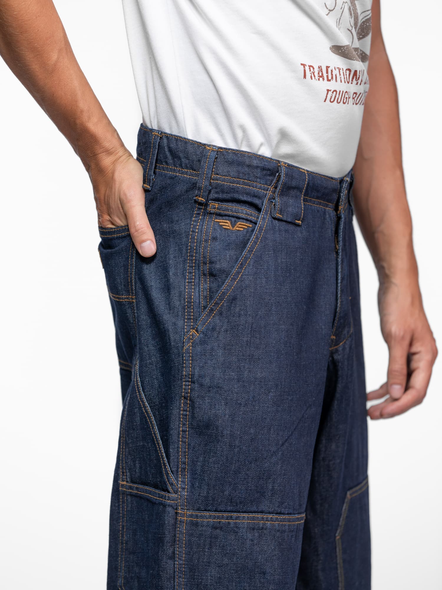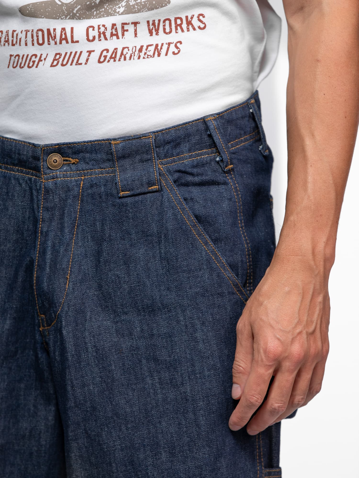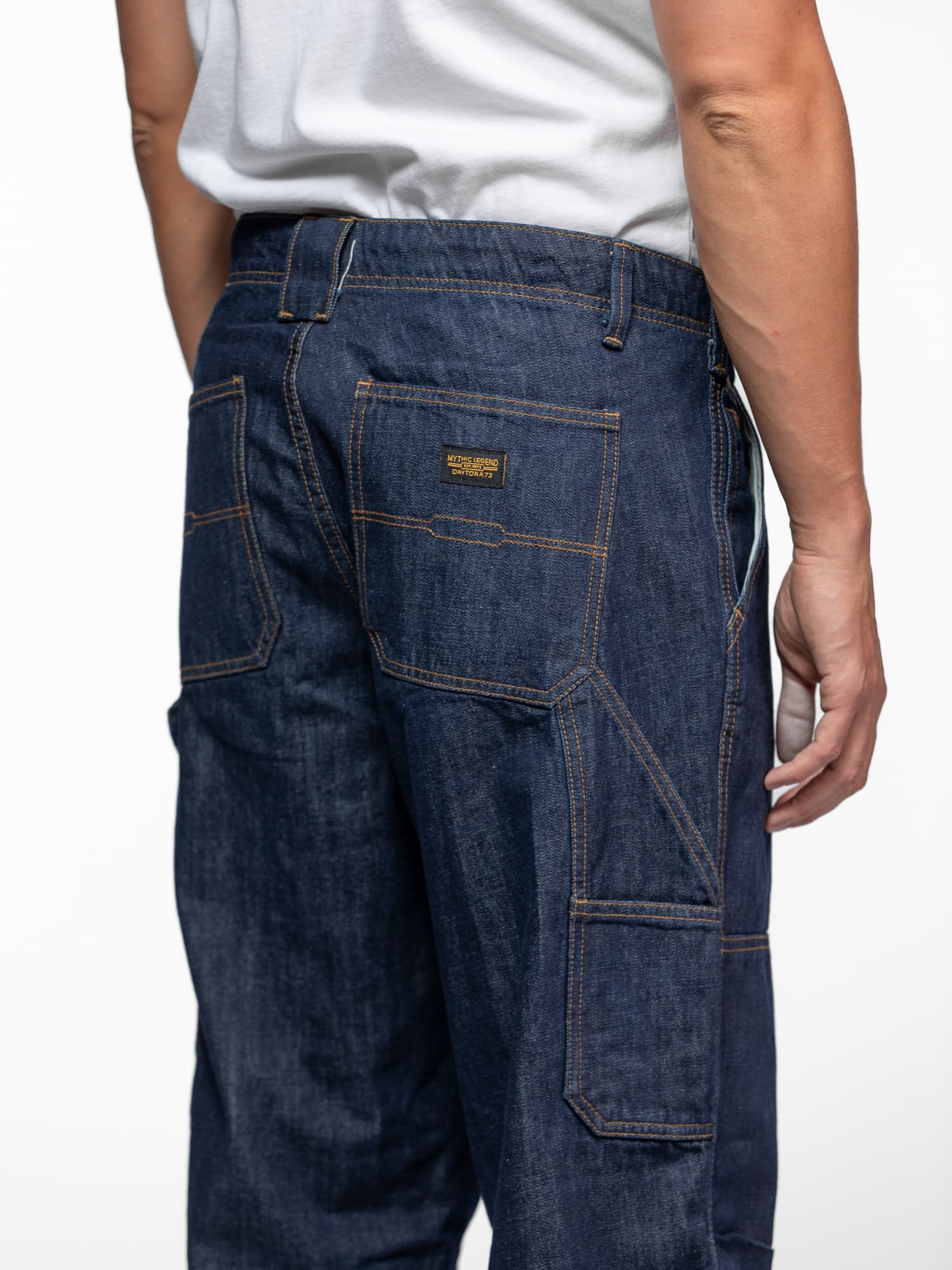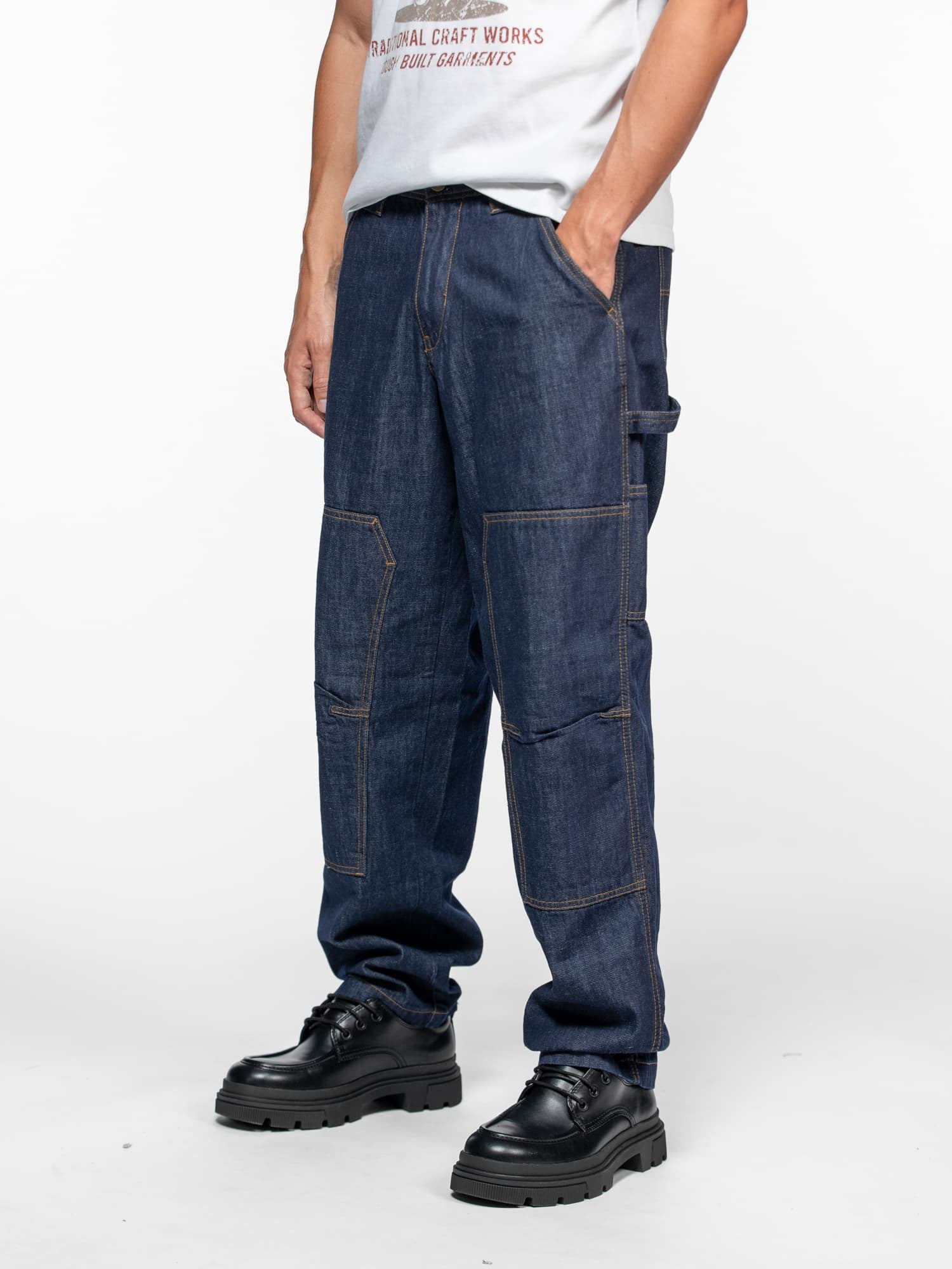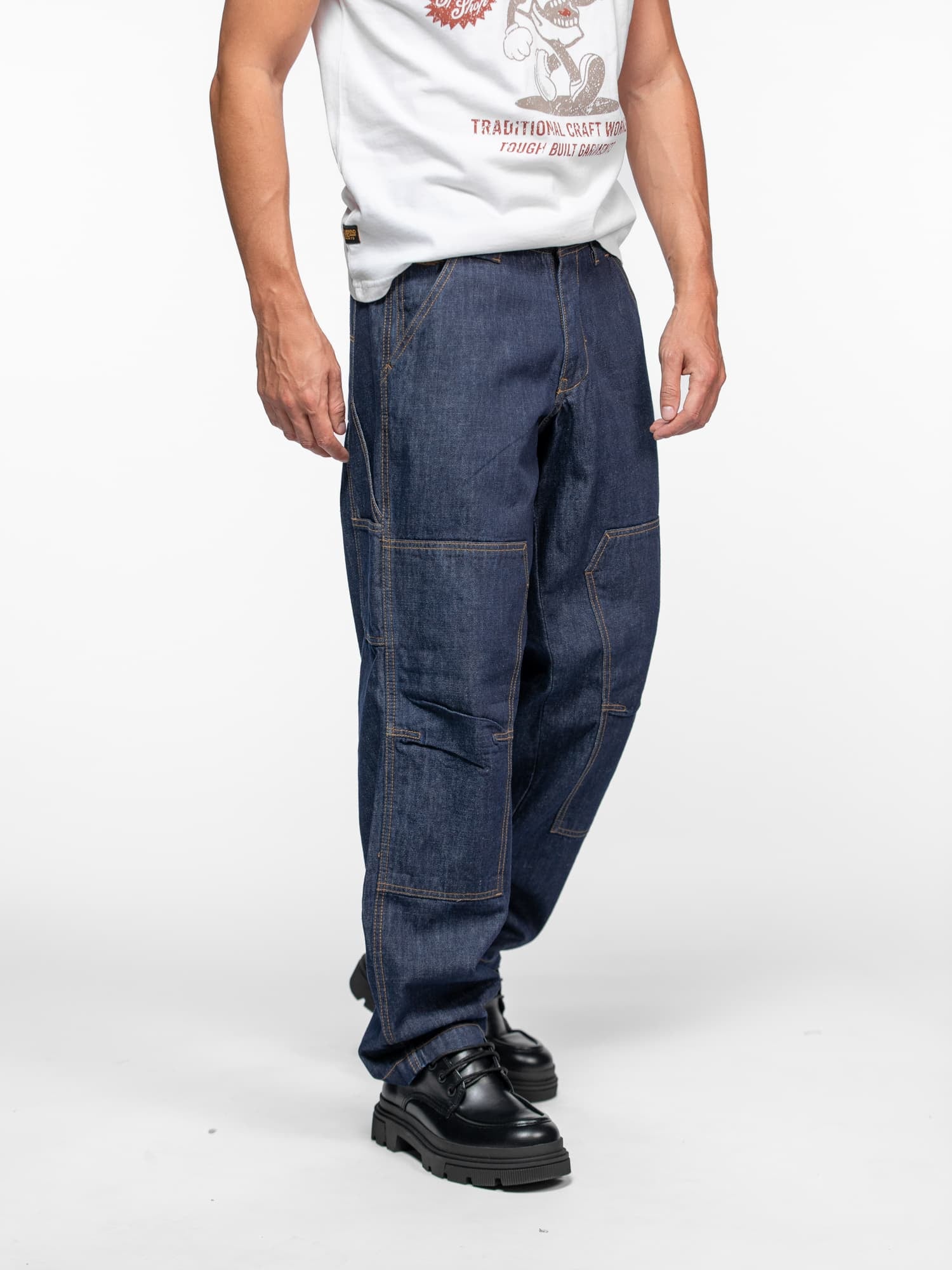 Ce pantalon en denim brut revisite l’esprit workwear avec ses surpiqûres contrastées et ses multiples découpes. Sa coupe ample et droite assure confort et liberté de mouvement, tandis que ses détails fonctionnels renforcent son caractère utilitaire. Une pièce robuste et stylée pour un look casual affirmé.