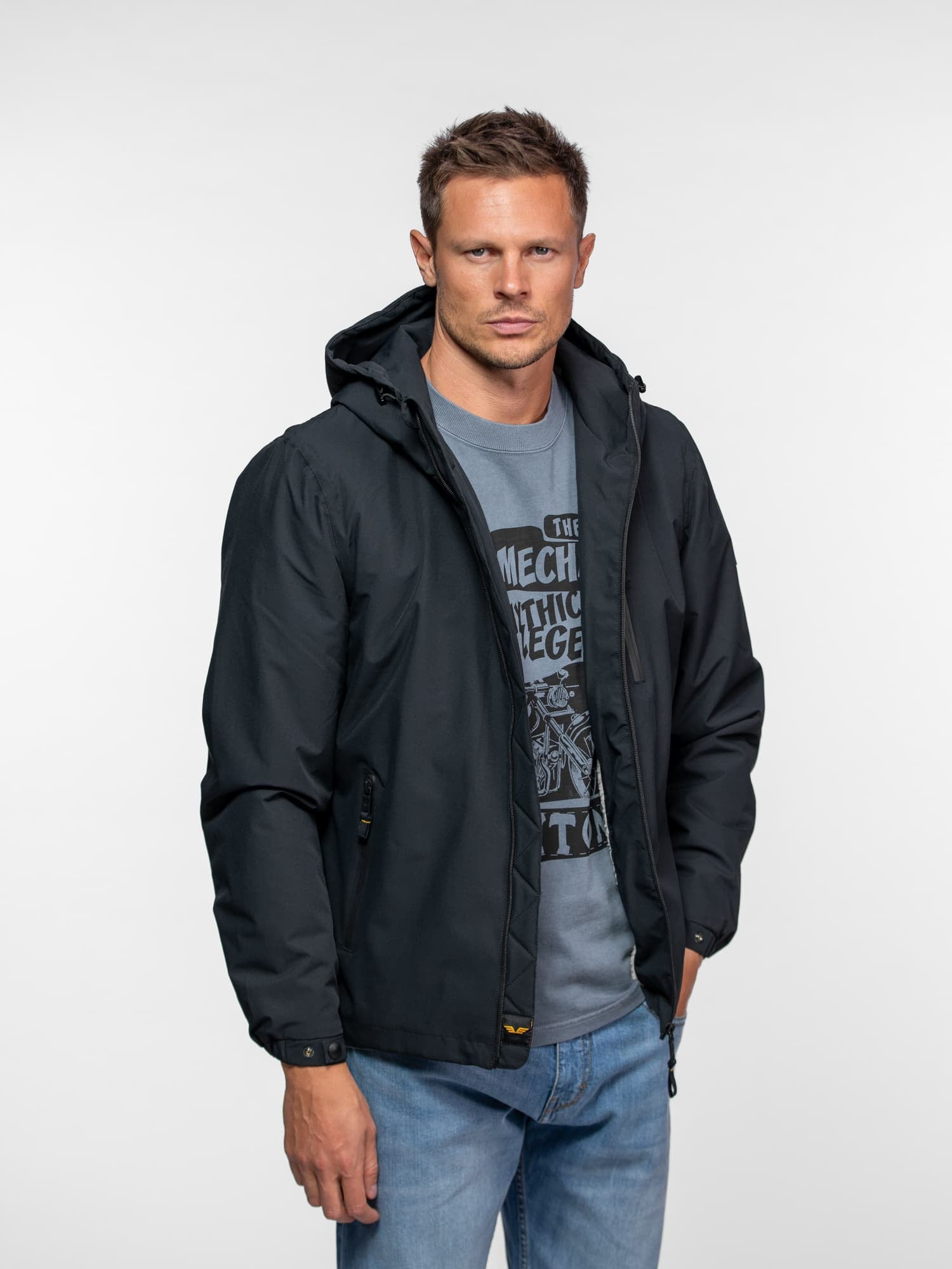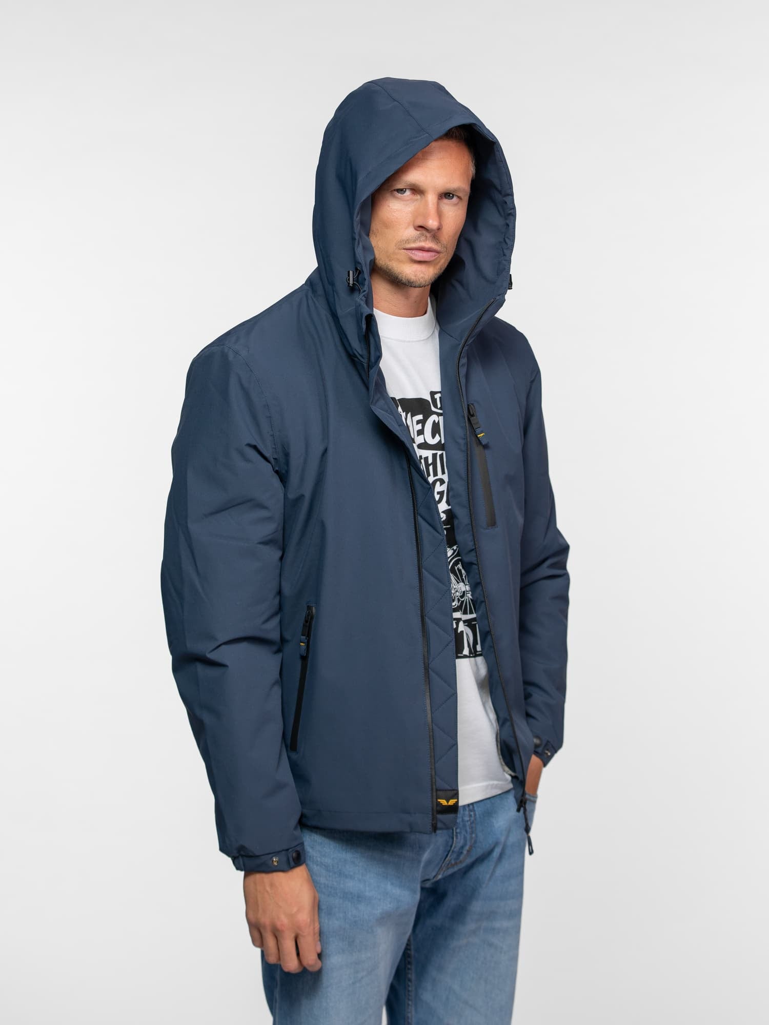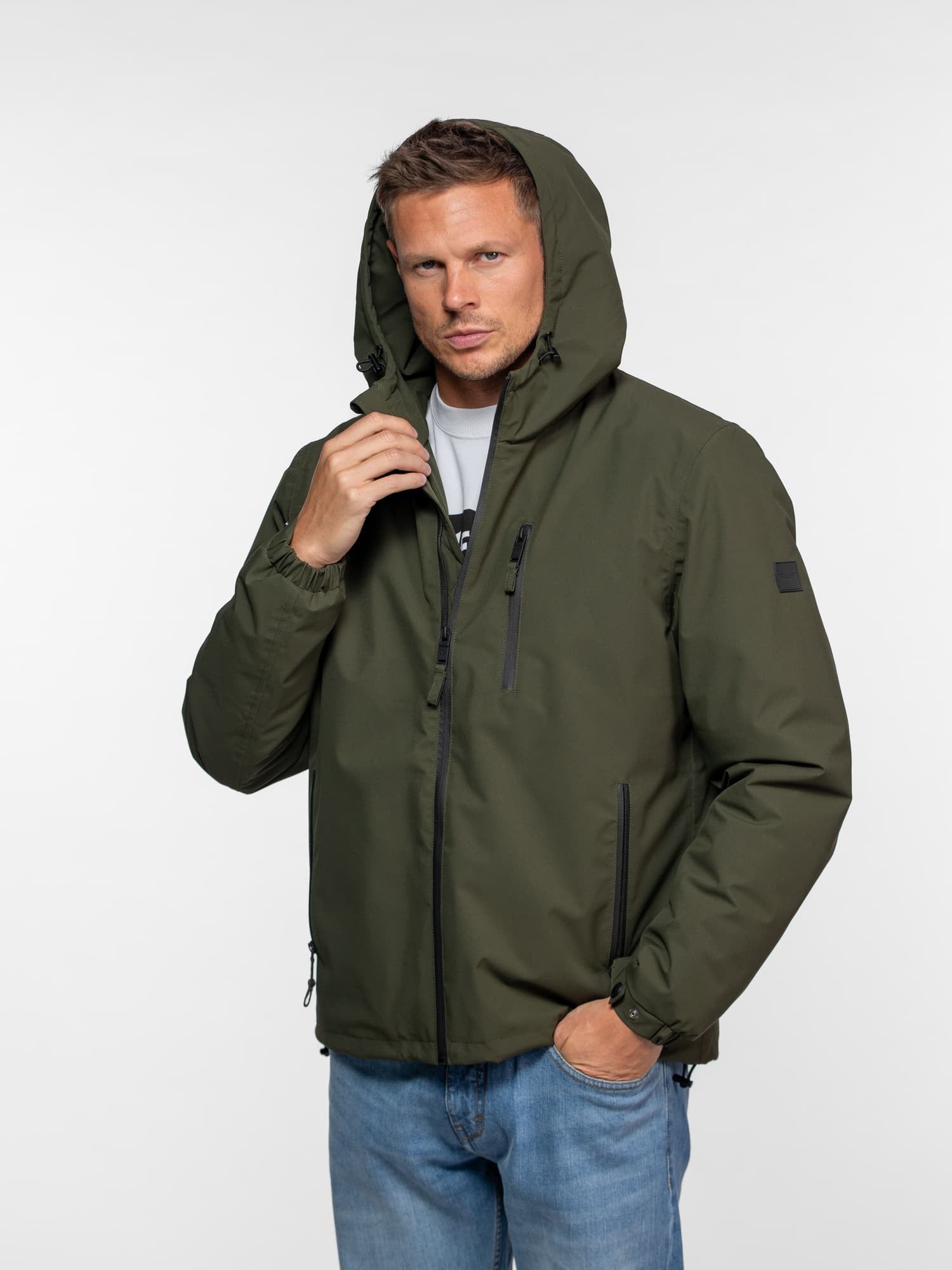 • Capuche ajustable à cordons